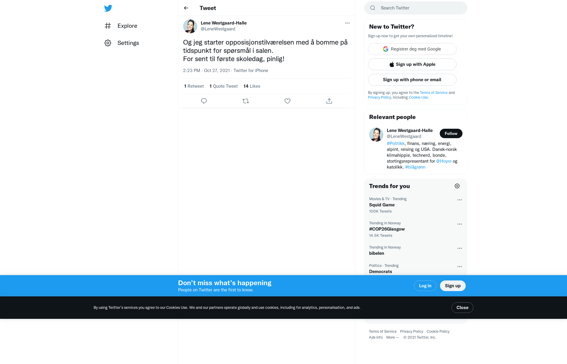Og jeg starter opposisjonstilværelsen med å bomme på tidspunkt for spørsmål i salen. For sent til første skoledag, pinlig!