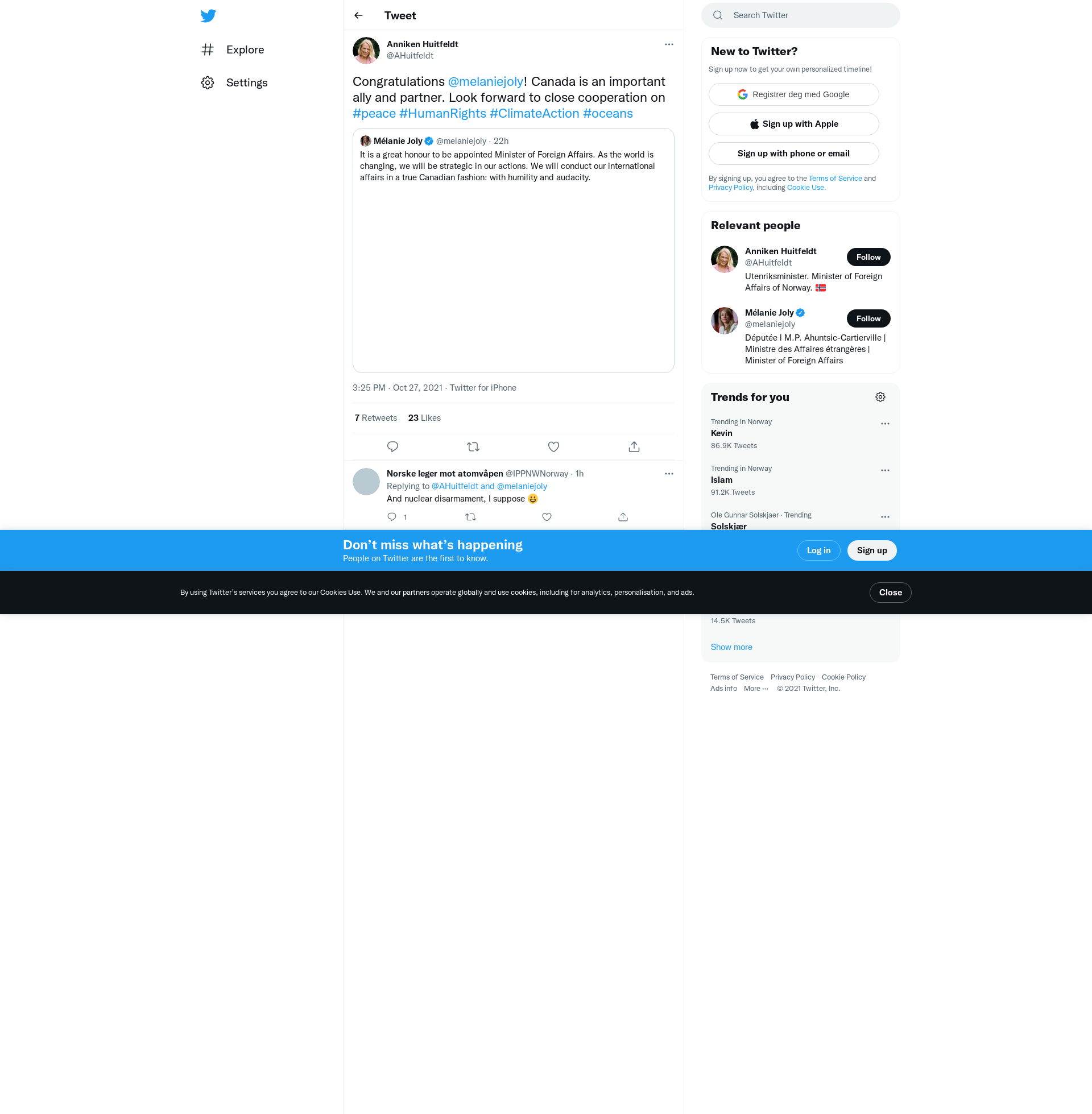 Congratulations @melaniejoly! Canada is an important ally and partner. Look forward to close cooperation on #peace #HumanRights #ClimateAction #oceans