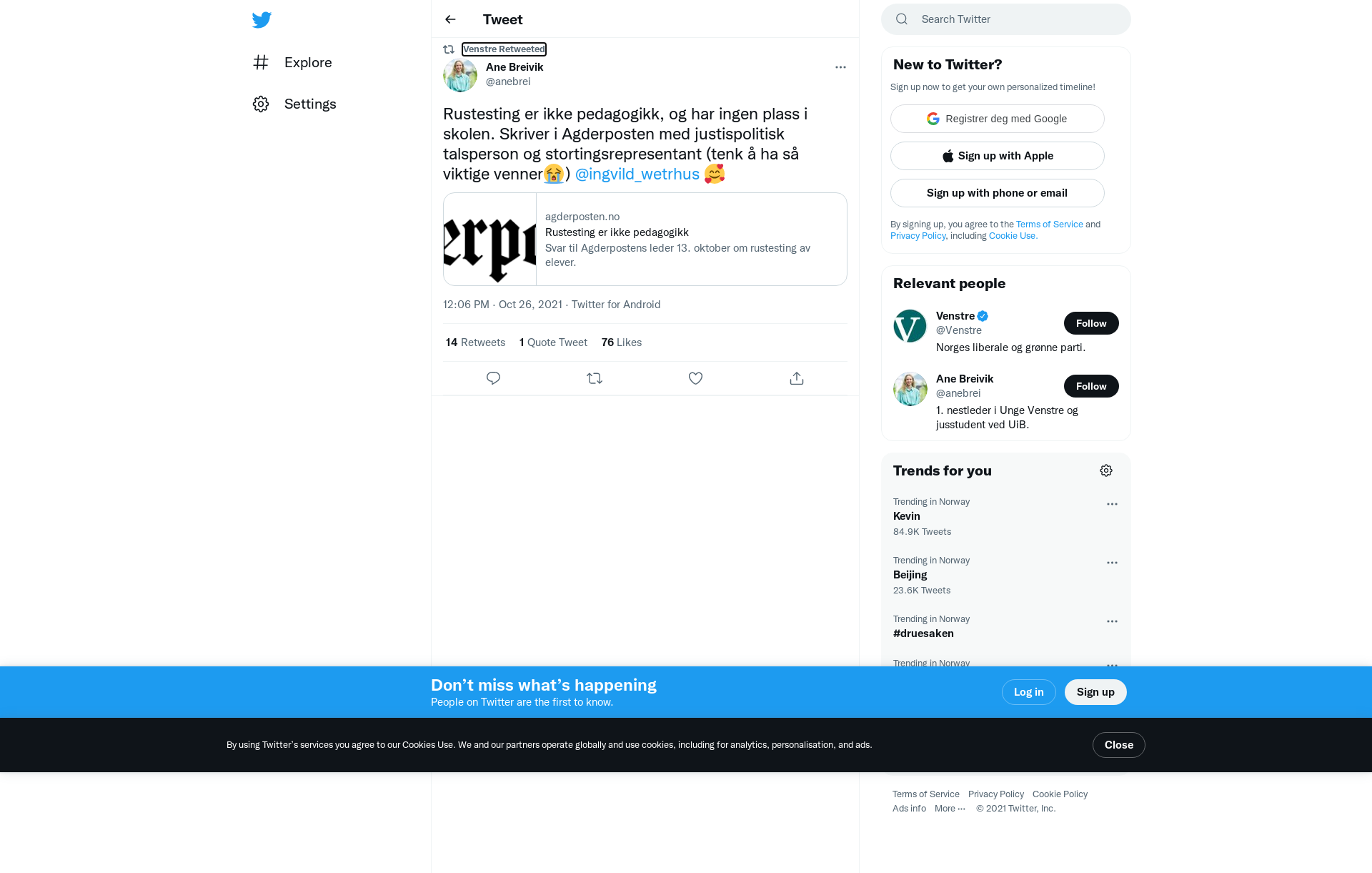 RT @anebrei: Rustesting er ikke pedagogikk, og har ingen plass i skolen. Skriver i Agderposten med justispolitisk talsperson og stortingsrepresentant (tenk å ha så viktige venner😭) @ingvild_wetrhus 🥰 https://t.co/f6HDyoJLmE