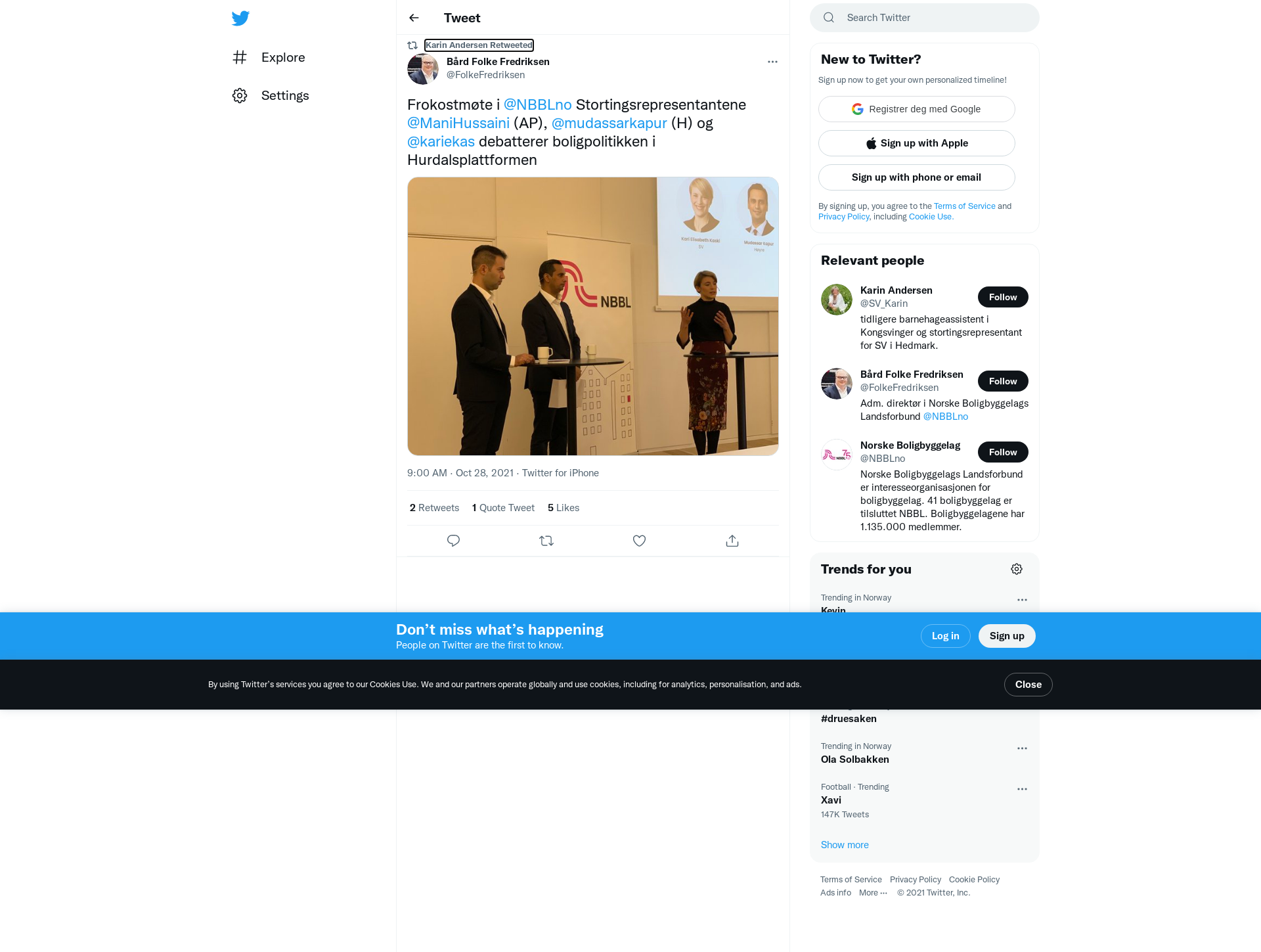 RT @FolkeFredriksen: Frokostmøte i @NBBLno Stortingsrepresentantene @ManiHussaini (AP), @mudassarkapur (H) og @kariekas debatterer boligpolitikken i Hurdalsplattformen https://t.co/uu3VvYDx4X