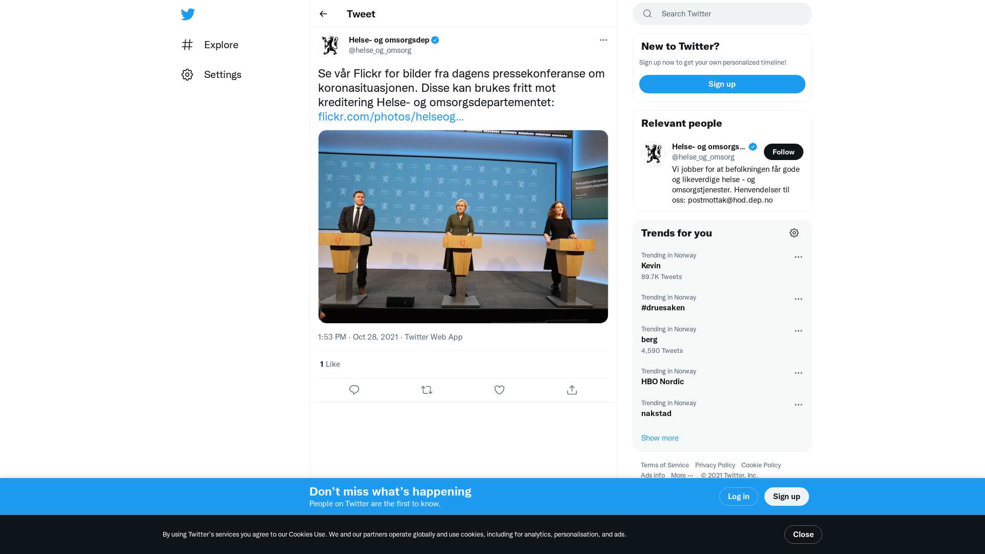 Se vår Flickr for bilder fra dagens pressekonferanse om koronasituasjonen. Disse kan brukes fritt mot kreditering Helse- og omsorgsdepartementet: https://t.co/yM74wK1rZ4 https://t.co/epo5em3XgU