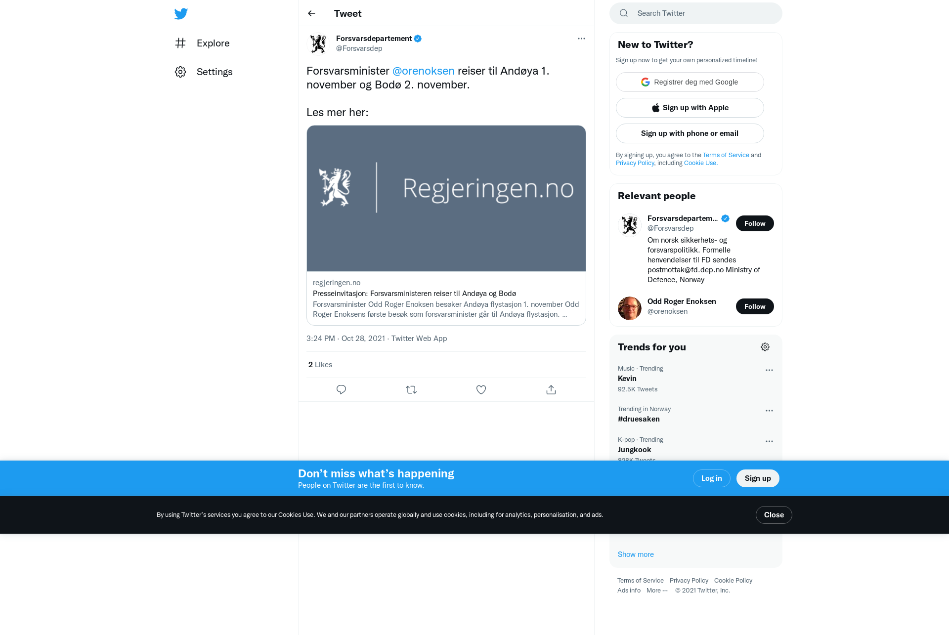 Presseinvitasjon: Forsvarsministeren reiser til Andøya og Bodø
