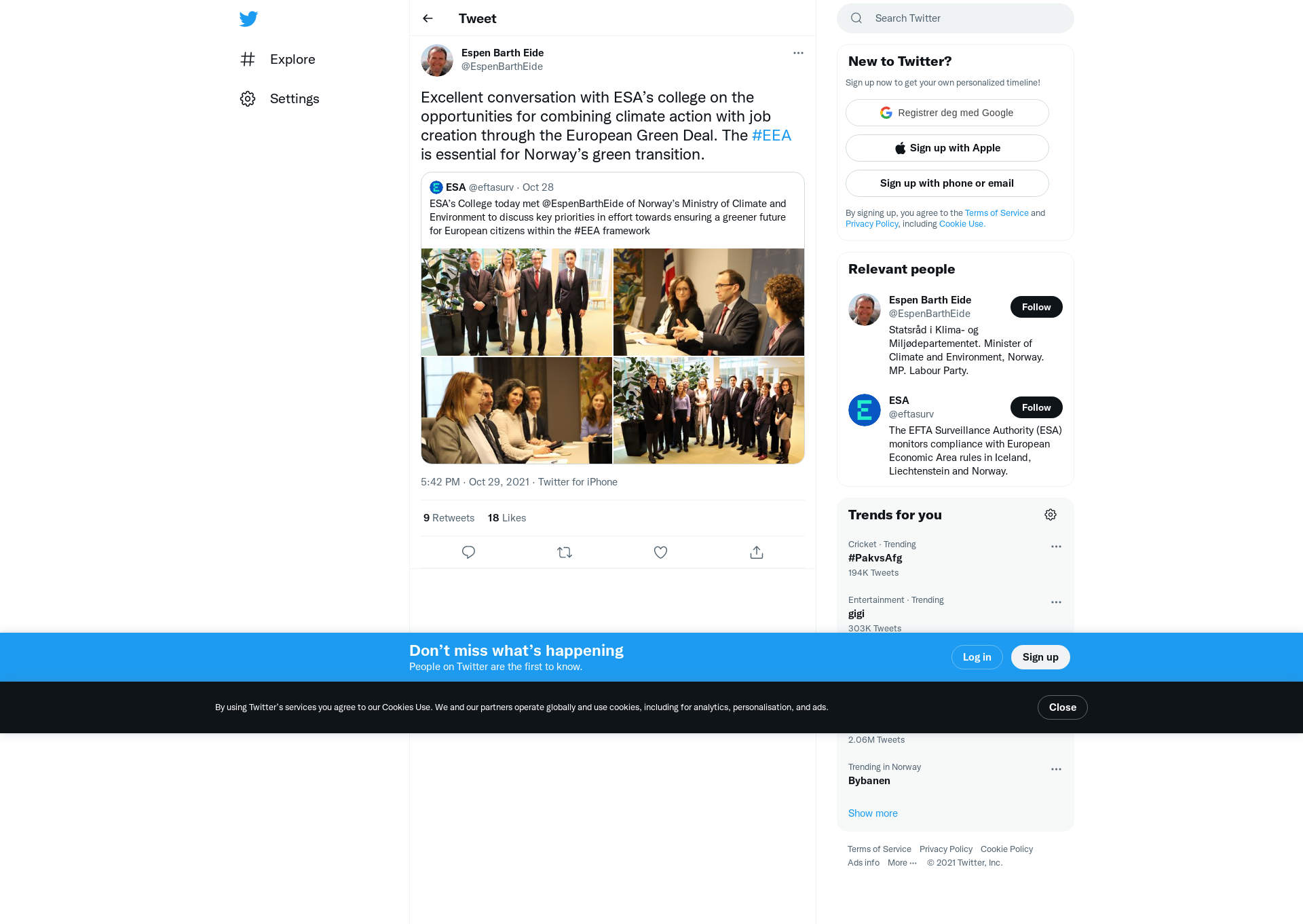 Excellent conversation with ESA’s college on the opportunities for combining climate action with job creation through the European Green Deal. The #EEA is essential for Norway’s green transition.