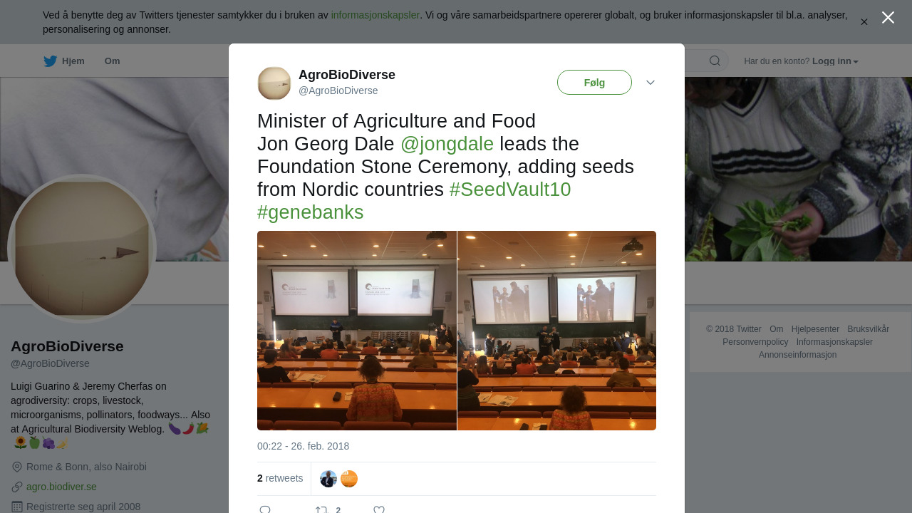 RT @AgroBioDiverse: Minister of Agriculture and Food Jon Georg Dale @jongdale leads the Foundation Stone Ceremony, adding seeds from Nordic…