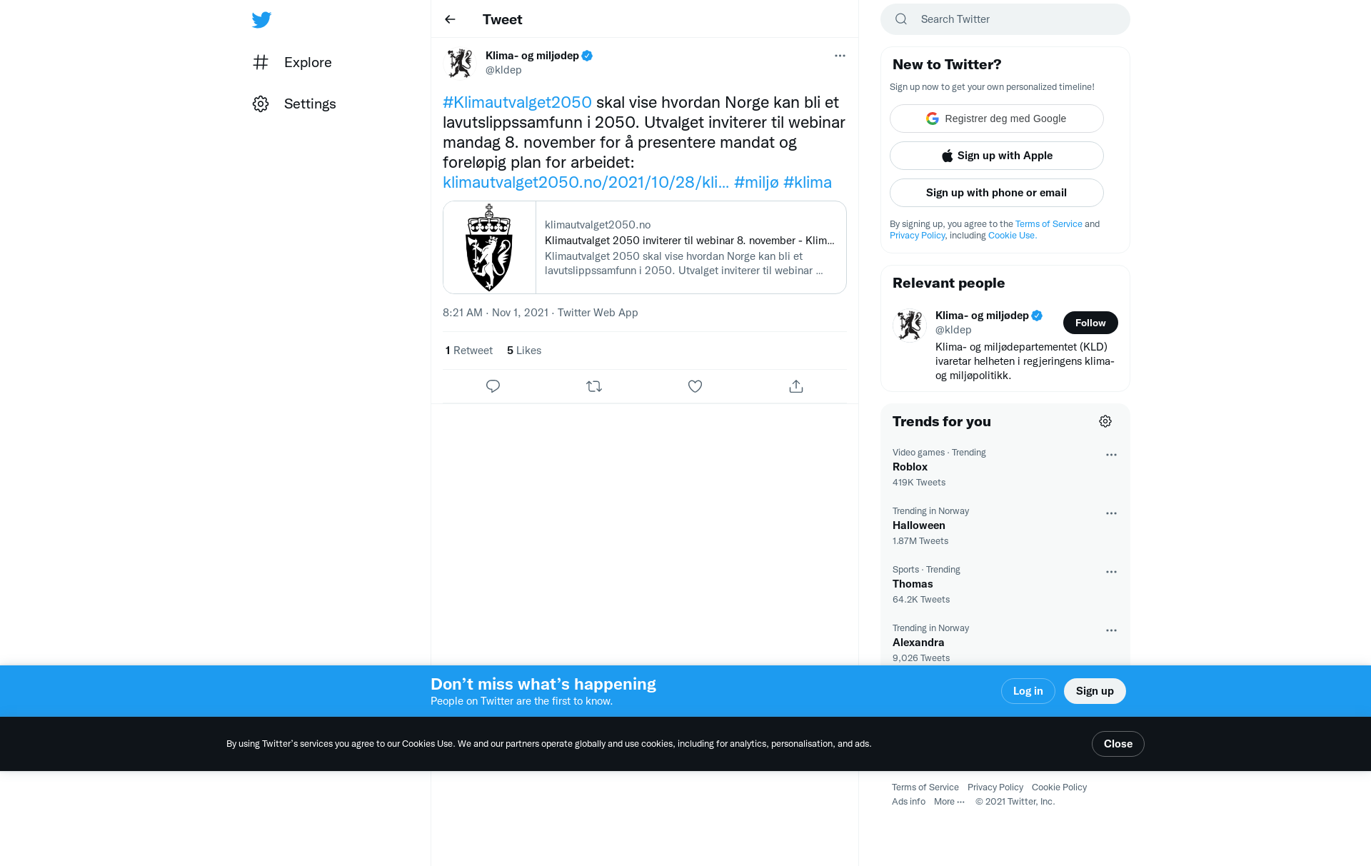 #Klimautvalget2050 skal vise hvordan Norge kan bli et lavutslippssamfunn i 2050. Utvalget inviterer til webinar mandag 8. november for å presentere mandat og foreløpig plan for arbeidet: https://t.co/ju1WJ8fqwo #miljø #klima