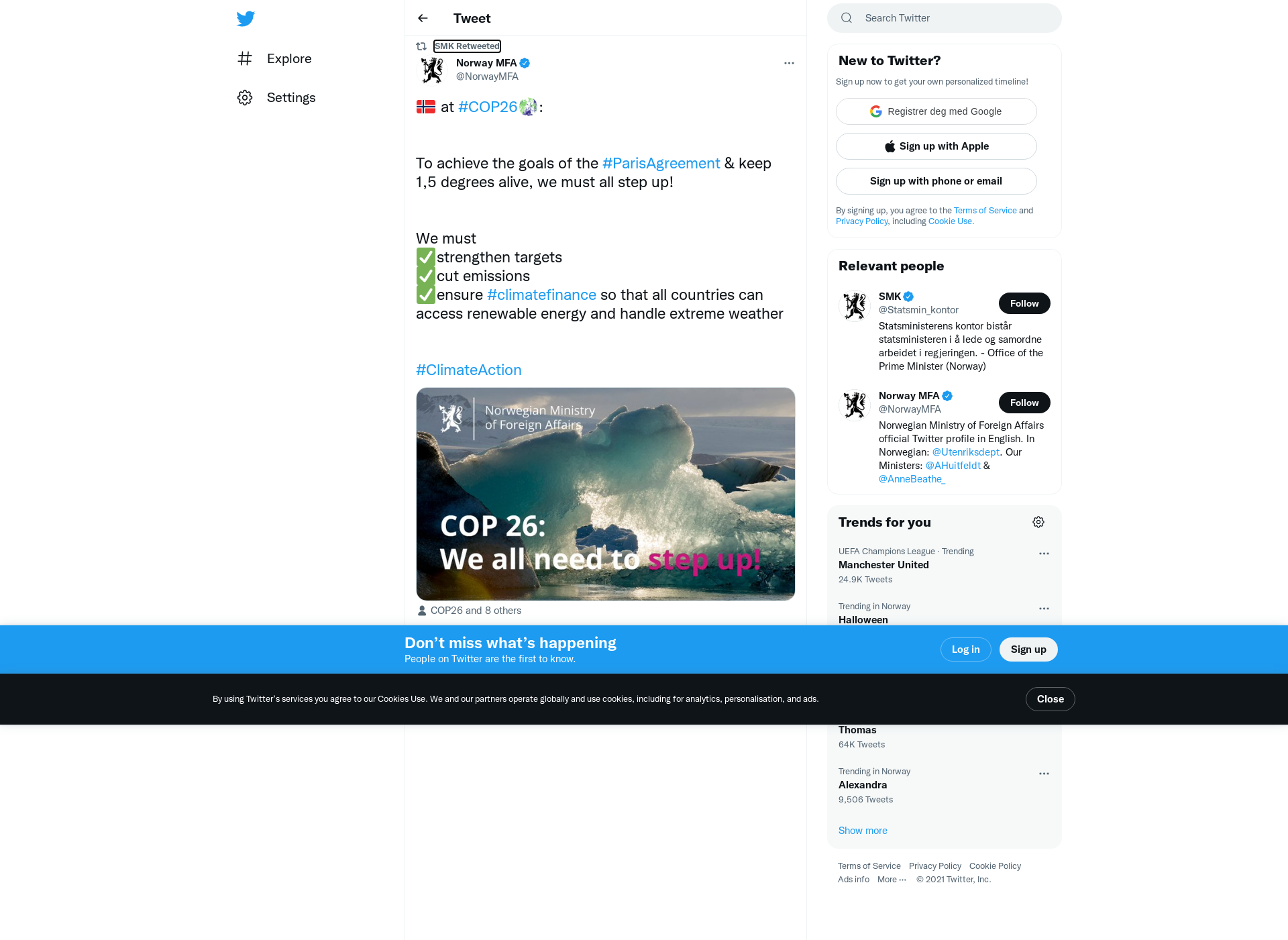 RT @NorwayMFA: 🇳🇴 at #COP26: To achieve the goals of the #ParisAgreement & keep 1,5 degrees alive, we must all step up! We must ✅streng…