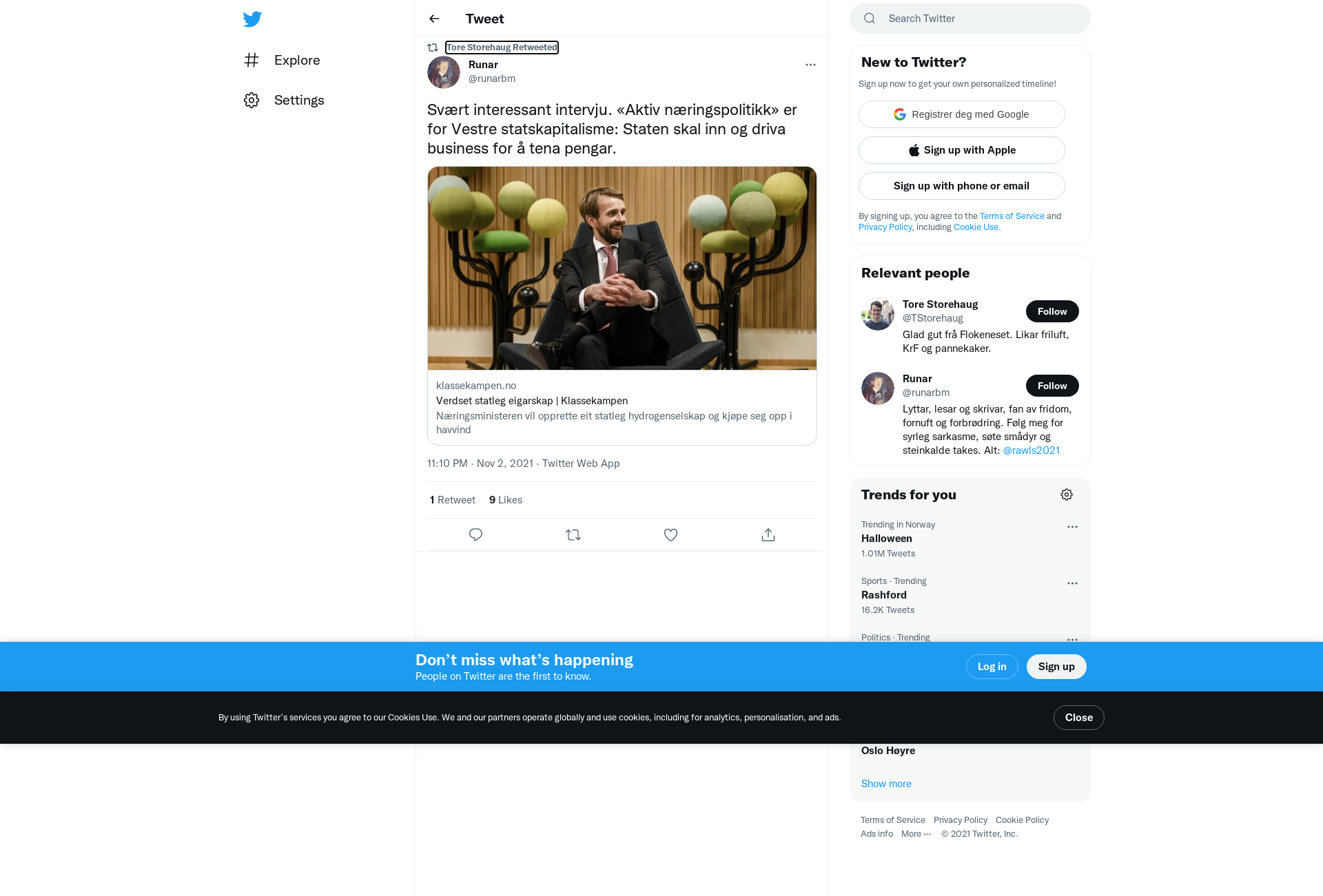 RT @runarbm: Svært interessant intervju. «Aktiv næringspolitikk» er for Vestre statskapitalisme: Staten skal inn og driva business for å tena pengar. https://t.co/xt0zHZtssc