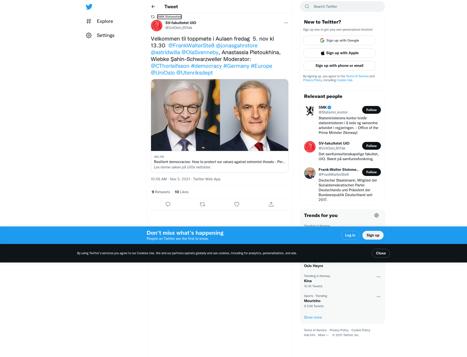 RT @UniOslo_SVfak: Velkommen til toppmøte i Aulaen fredag 5. nov kl 13.30 @FrankWalterSte8 @jonasgahrstore @astridwilla @OlaSvenneby, Anastassia Pletoukhina, Wiebke Şahin-Schwarzweller Moderator: @CThorleifsson #democracy #Germany #Europe @UniOslo @Utenriksdept