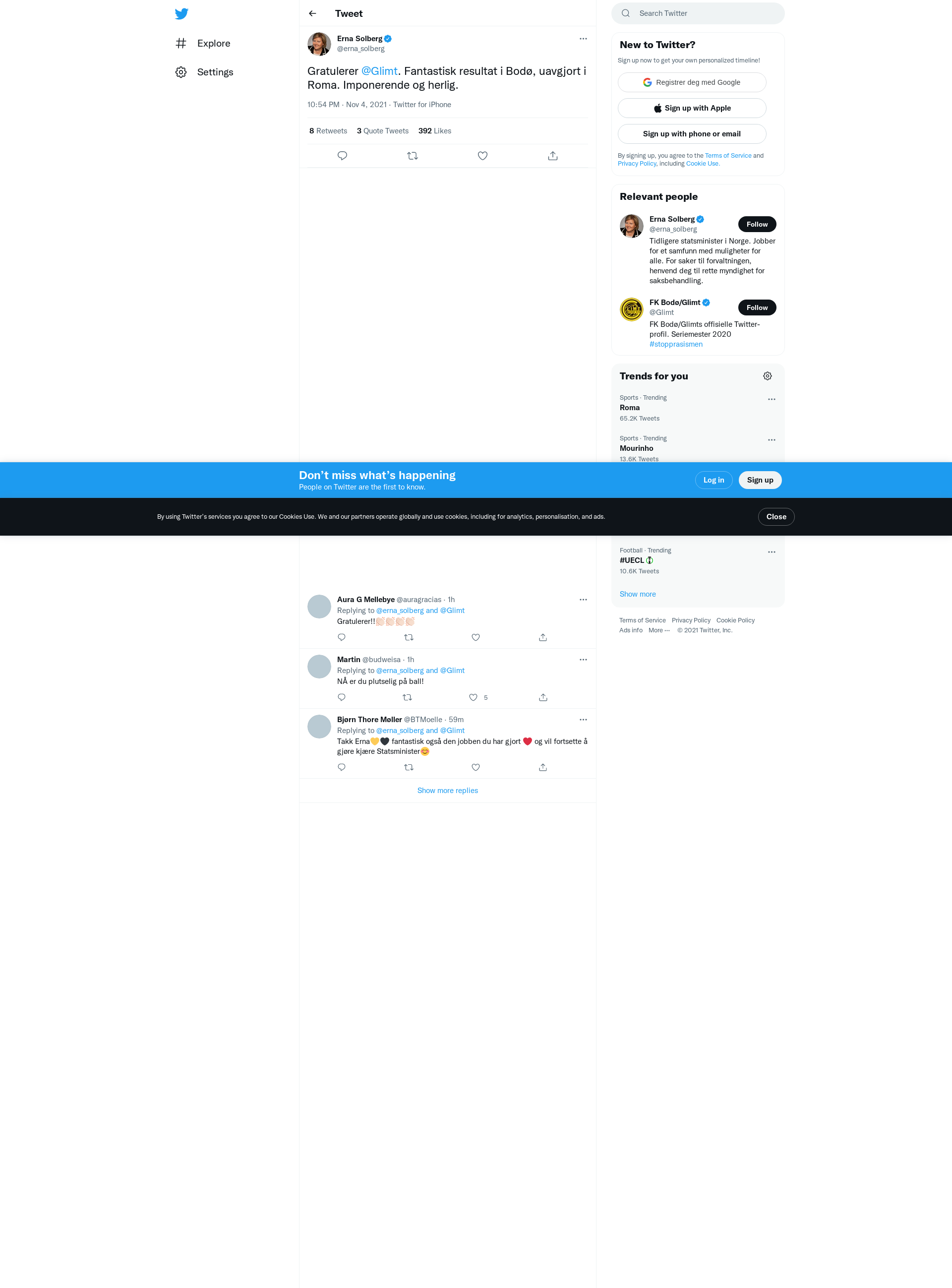 Gratulerer @Glimt. Fantastisk resultat i Bodø, uavgjort i Roma. Imponerende og herlig.