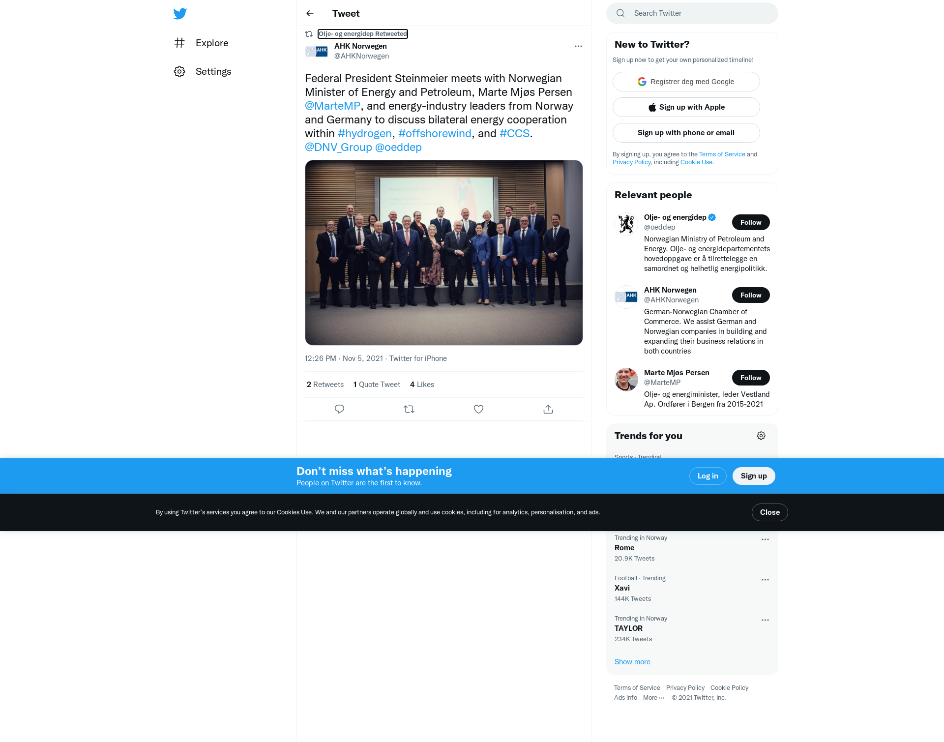 RT @AHKNorwegen: Federal President Steinmeier meets with Norwegian Minister of Energy and Petroleum, Marte Mjøs Persen @MarteMP, and energy-industry leaders from Norway and Germany to discuss bilateral energy cooperation within #hydrogen, #offshorewind, and #CCS. @DNV_Group @oeddep https://t.co/G30GQqevPN