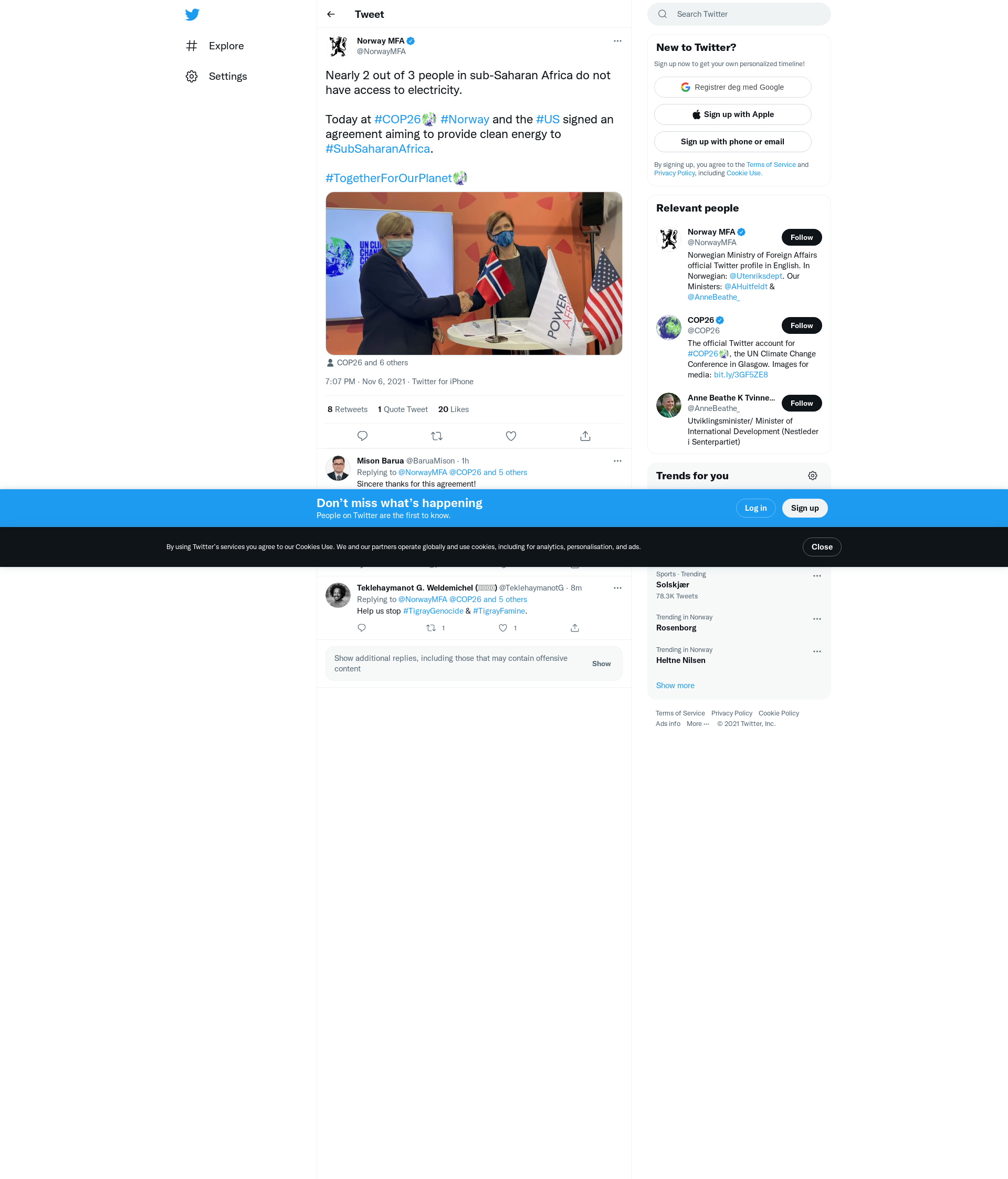 Today at #COP26 #Norway and the #US signed an agreement aiming to provide clean energy to #SubSaharanAfrica.