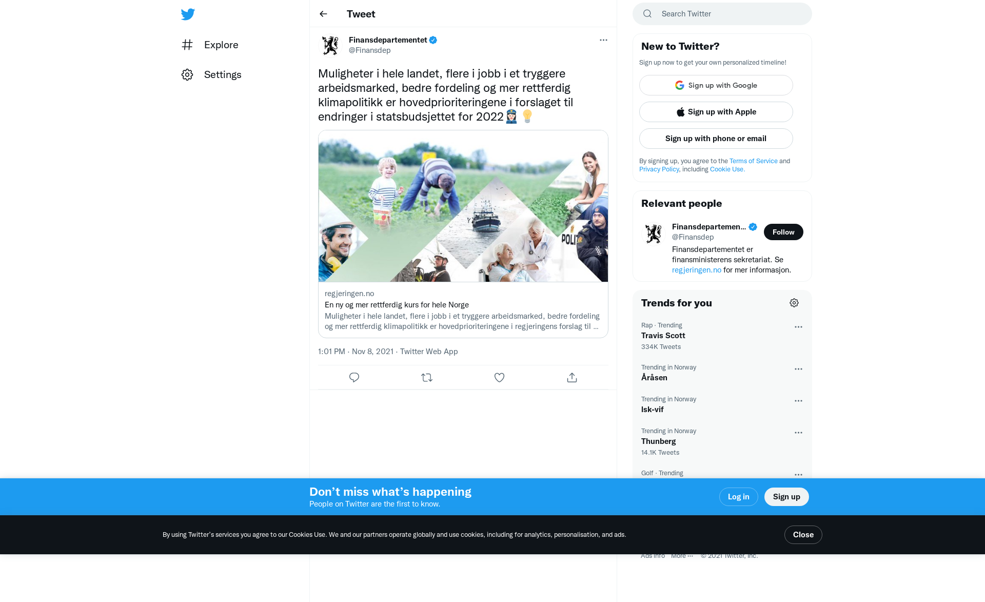 Muligheter i hele landet, flere i jobb i et tryggere arbeidsmarked, bedre fordeling og mer rettferdig klimapolitikk er hovedprioriteringene i forslaget til endringer i statsbudsjettet for 2022👮🏻♀️💡https://t.co/iUUWc2BF9P