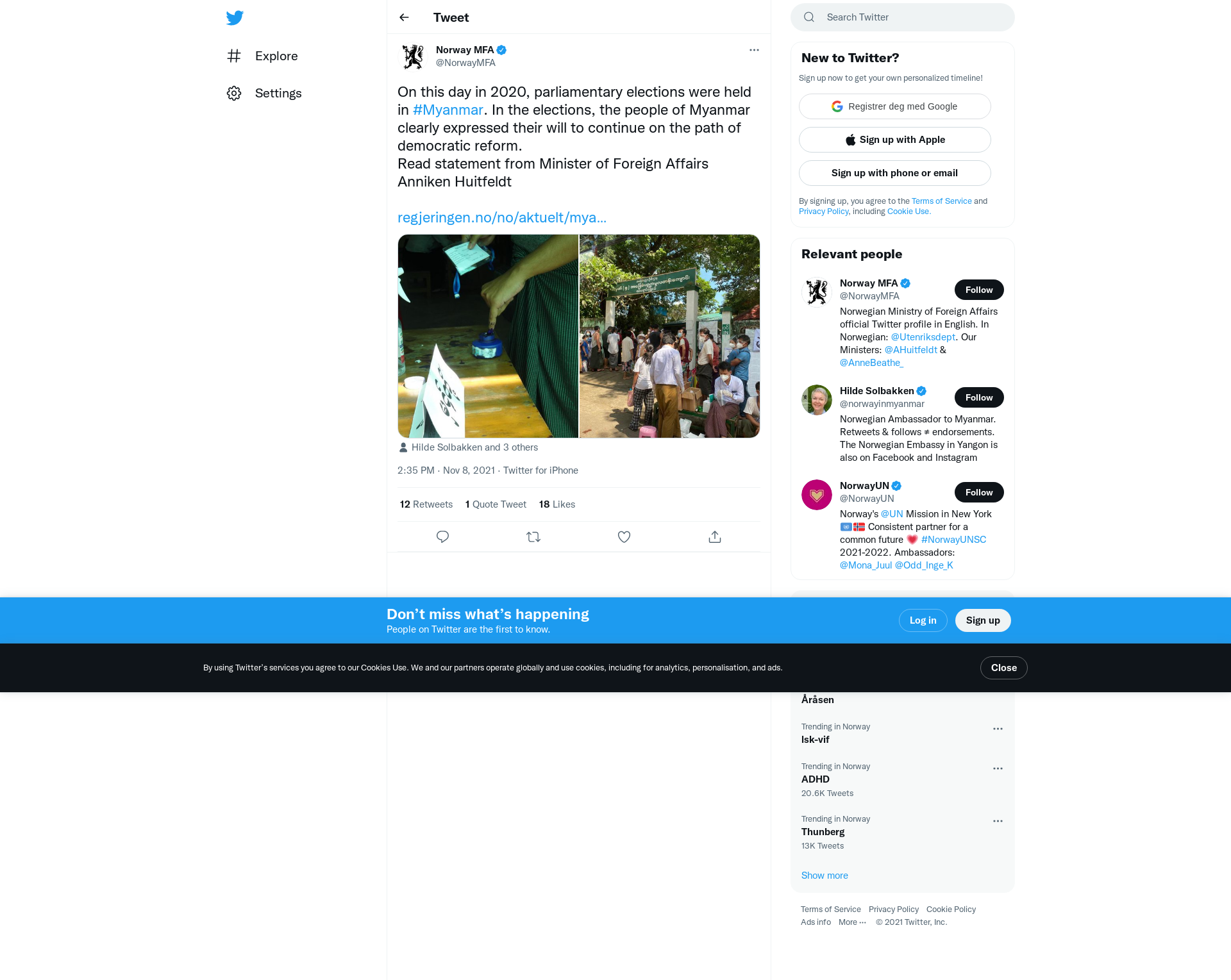 One year after the parliamentary elections, Norway reiterates its condemnation of the military coup