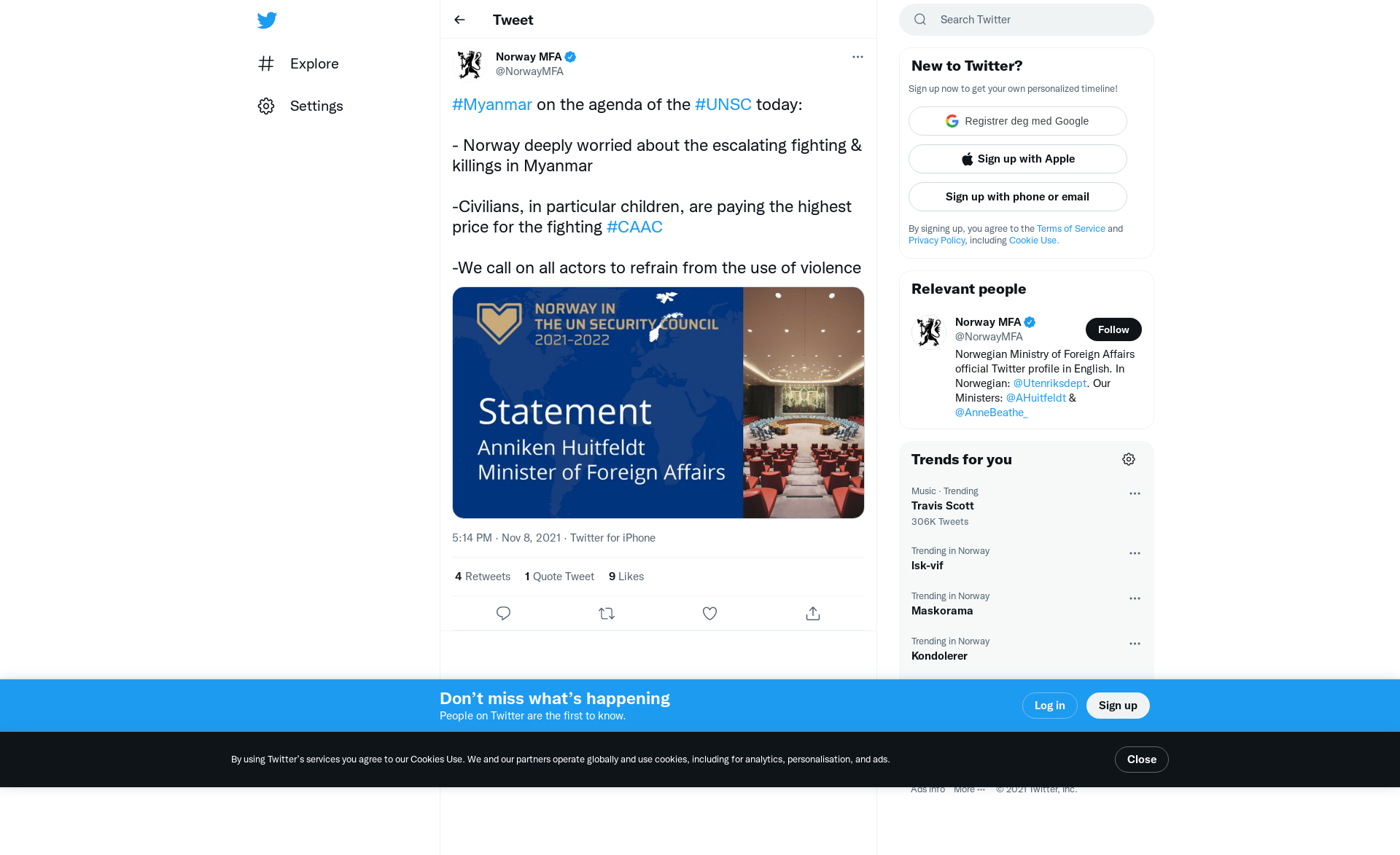 - Norway deeply worried about the escalating fighting & killings in Myanmar