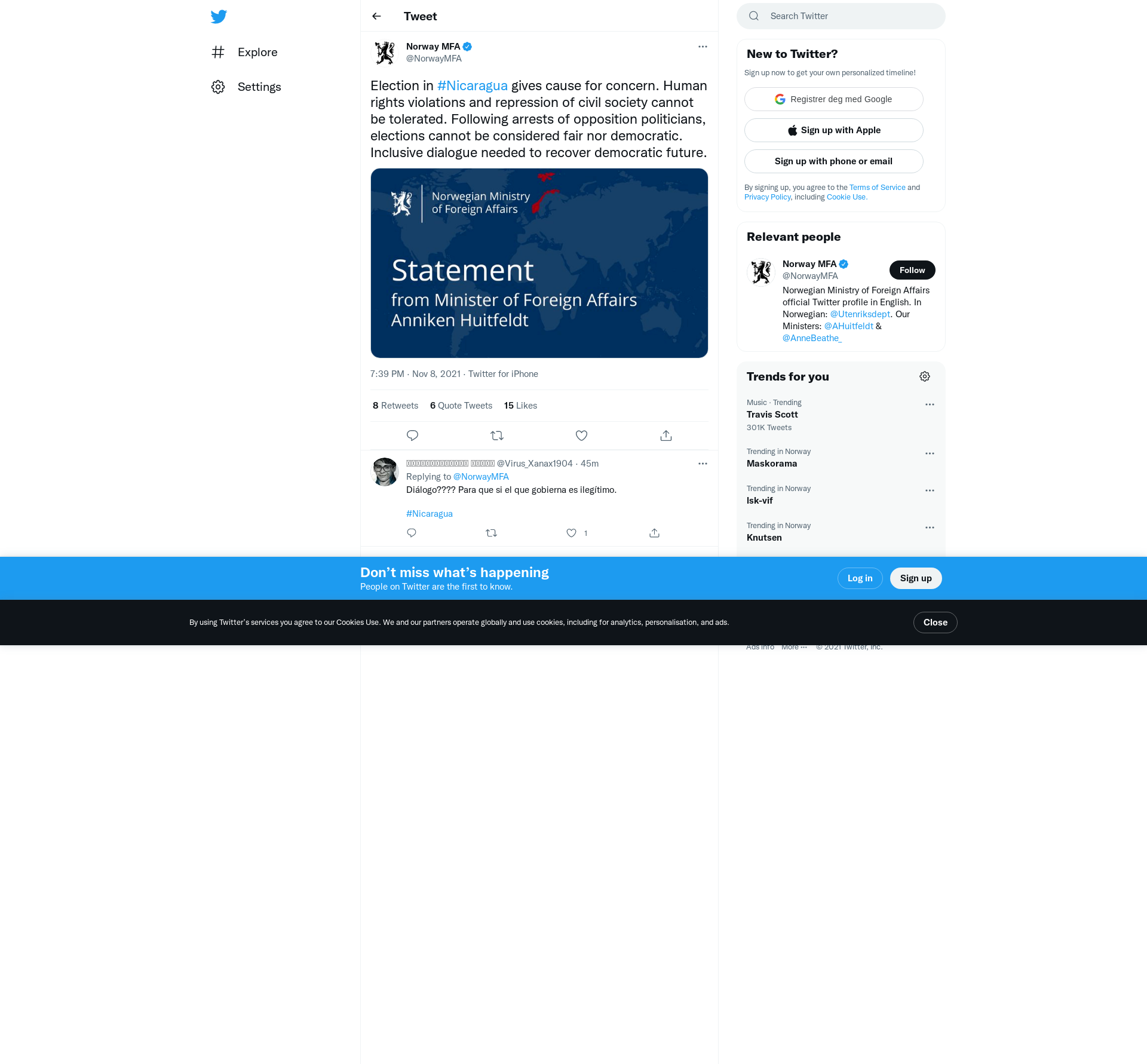 Election in #Nicaragua gives cause for concern. Human rights violations and repression of civil society cannot be tolerated. Following arrests of opposition politicians, elections cannot be considered fair nor democratic. Inclusive dialogue needed to recover democratic future. https://t.co/xr6e9aXFn9