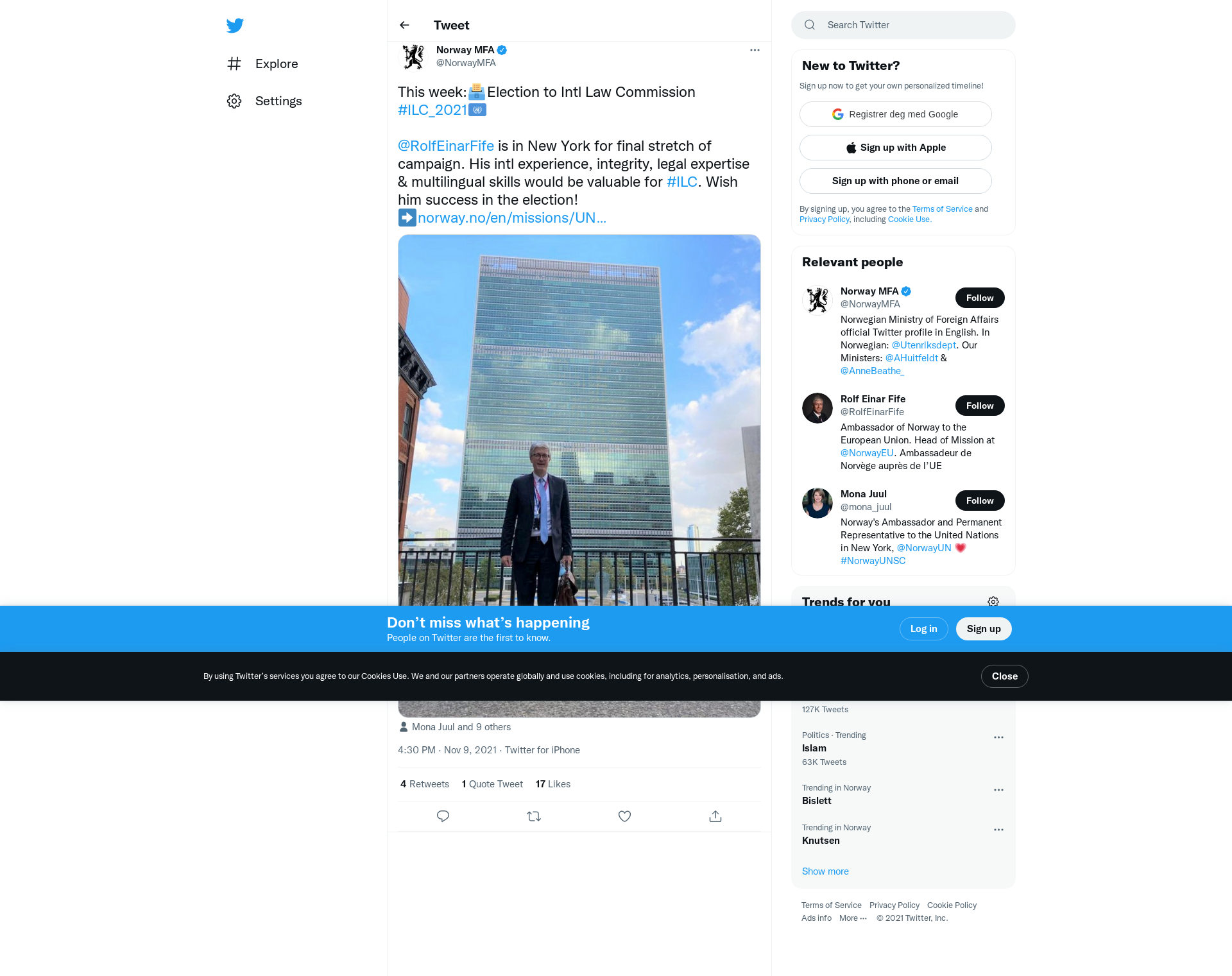 Candidate of Norway, Denmark, Finland, Iceland, and Sweden for the United Nations International Law Commission for the period 2023–2027 The Nordic countries are proud to present the candidature of Ambassador Rolf Einar Fife for election to the International Law Commission (ILC) for the term 2023-2027, at the elections to be held during the 76th session of the General Assembly of the United Nations in 2021. Defending and strengthening the rule of law and international legal institutions are core Nordic