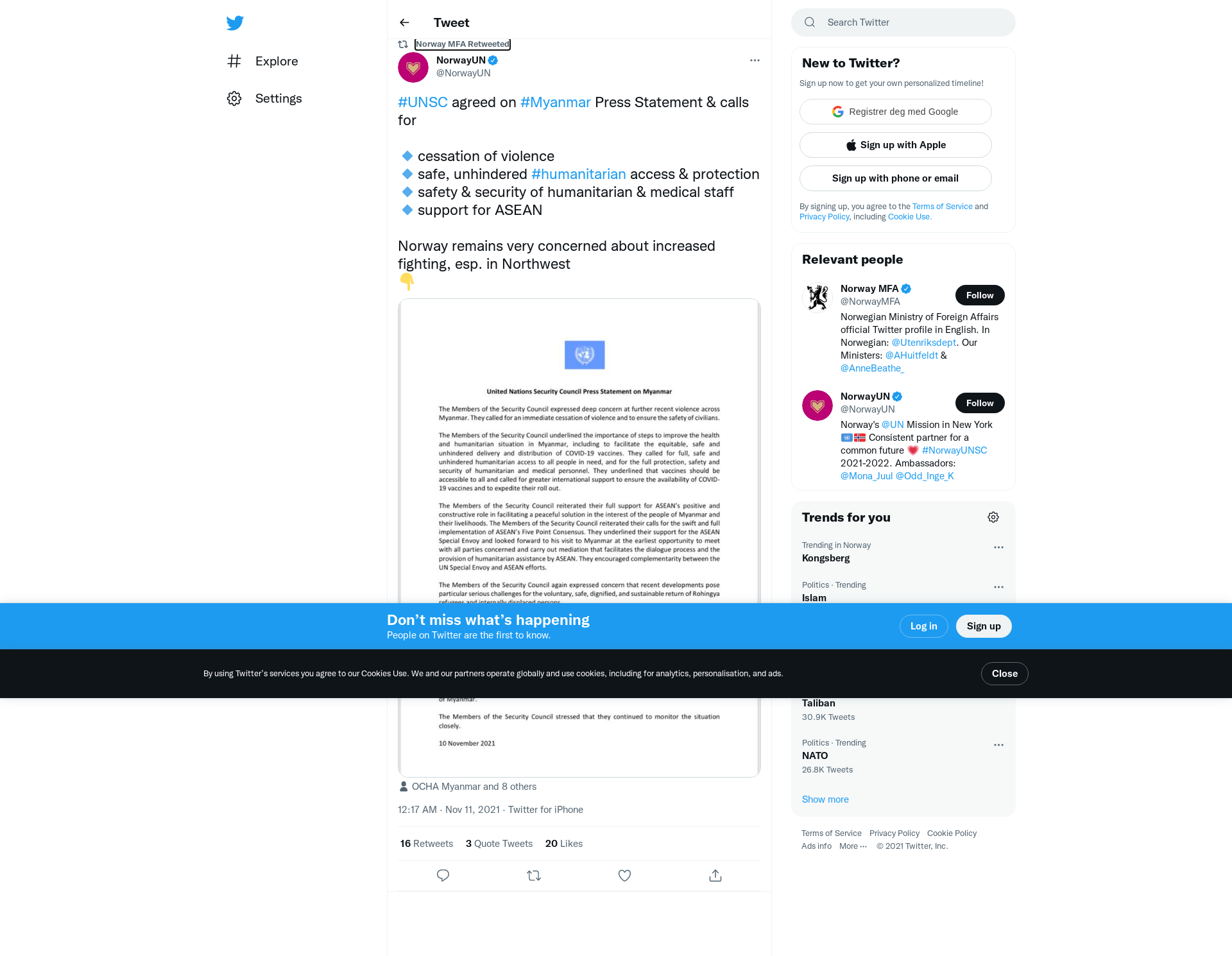 RT @NorwayUN: #UNSC agreed on #Myanmar Press Statement & calls for 🔹cessation of violence 🔹safe, unhindered #humanitarian access & protect…