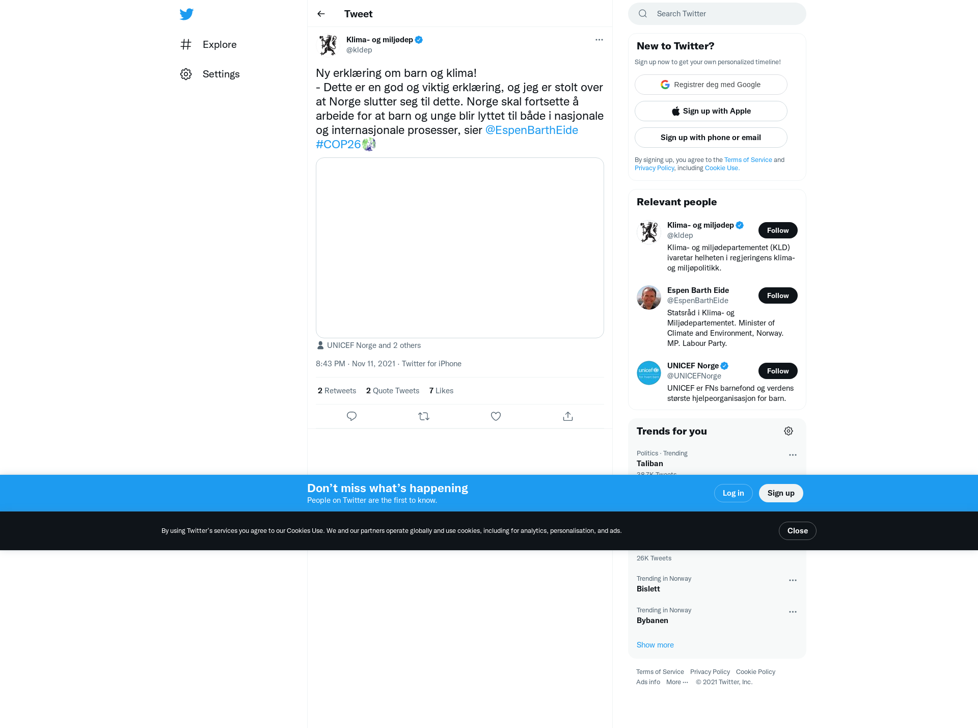 - Dette er en god og viktig erklæring, og jeg er stolt over at Norge slutter seg til dette. Norge skal fortsette å arbeide for at barn og unge blir lyttet til både i nasjonale og internasjonale prosesser, sier @EspenBarthEide