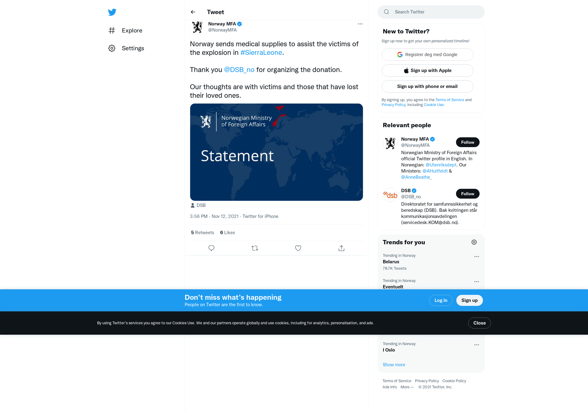 Norway sends medical supplies to assist the victims of the explosion in #SierraLeone.