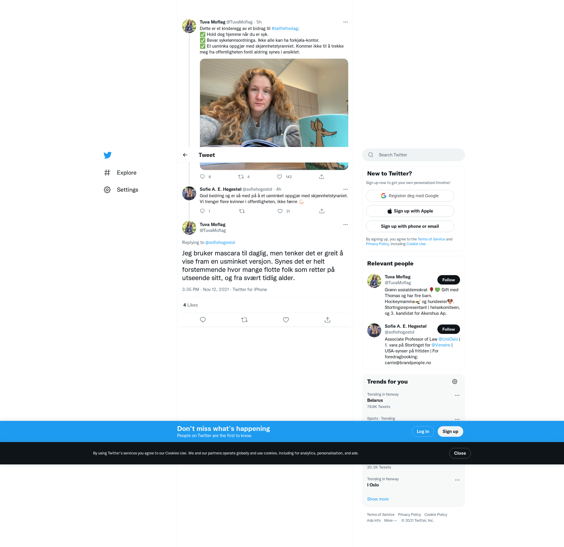 @sofiehogestol Jeg bruker mascara til daglig, men tenker det er greit å vise fram en usminket versjon. Synes det er helt forstemmende hvor mange flotte folk som retter på utseende sitt, og fra svært tidlig alder.