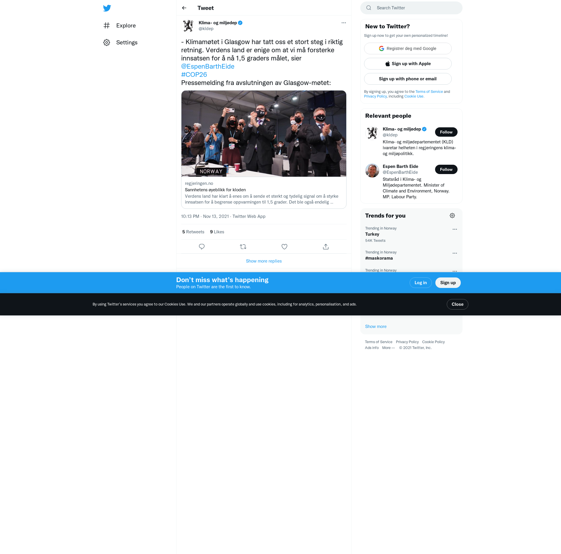 - Klimamøtet i Glasgow har tatt oss et stort steg i riktig retning. Verdens land er enige om at vi må forsterke innsatsen for å nå 1,5 graders målet, sier @EspenBarthEide