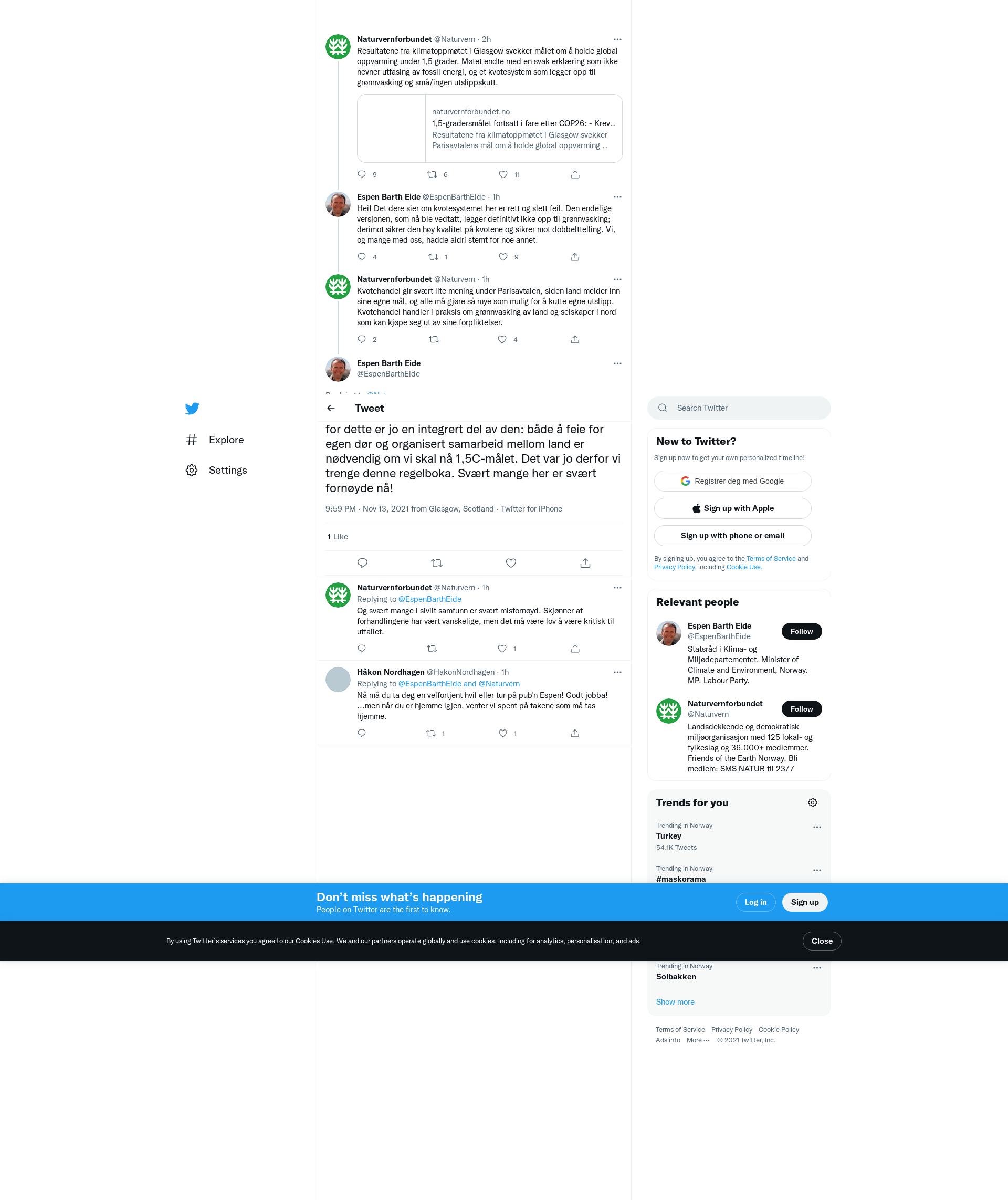 @Naturvern Da konstaterer jeg at dere er uenige med #Parisavtalen, for dette er jo en integrert del av den: både å feie for egen dør og organisert samarbeid mellom land er nødvendig om vi skal nå 1,5C-målet. Det var jo derfor vi trenge denne regelboka. Svært mange her er svært fornøyde nå!