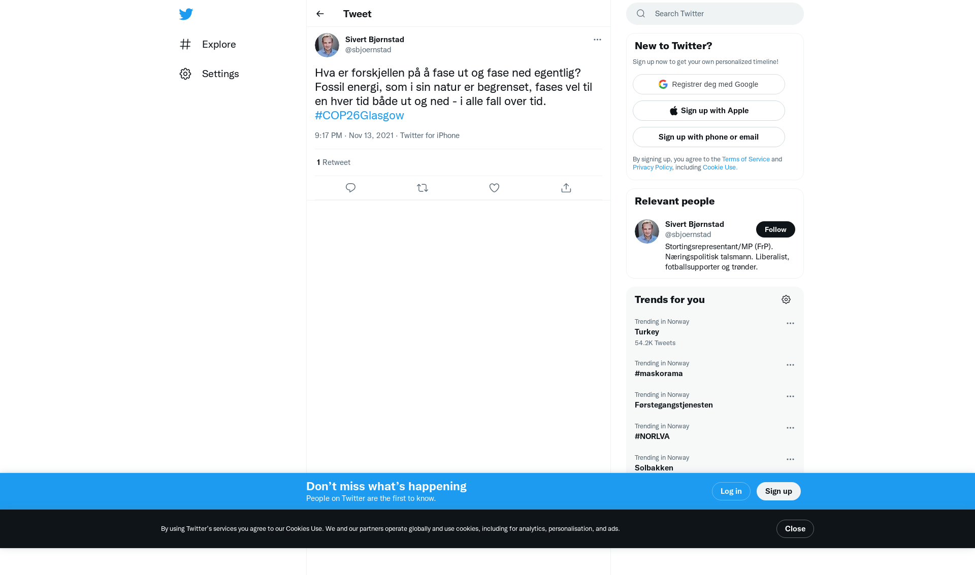 Hva er forskjellen på å fase ut og fase ned egentlig? Fossil energi, som i sin natur er begrenset, fases vel til en hver tid både ut og ned - i alle fall over tid. #COP26Glasgow