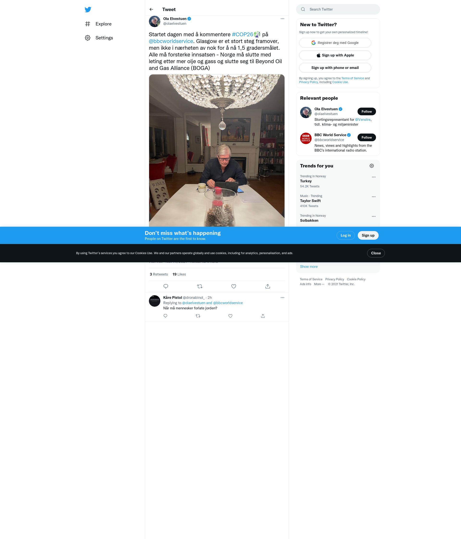 Startet dagen med å kommentere #COP26 på @bbcworldservice. Glasgow er et stort steg framover, men ikke i nærheten av nok for å nå 1,5 gradersmålet. Alle må forsterke innsatsen - Norge må slutte med leting etter mer olje og gass og slutte seg til Beyond Oil and Gas Alliance (BOGA) https://t.co/4Oqr4sv37S