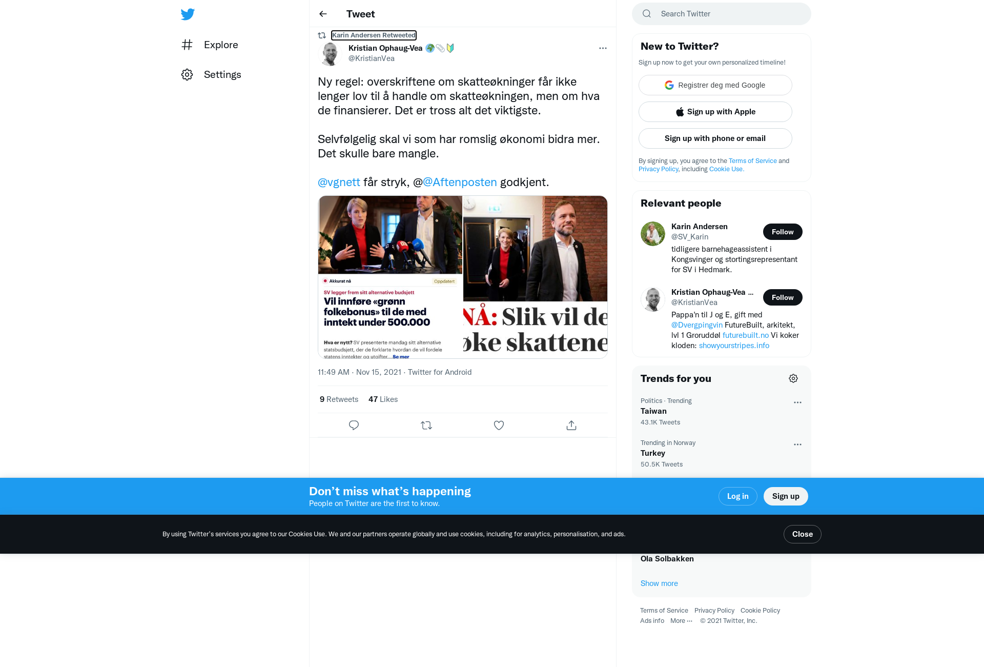 RT @KristianVea: Ny regel: overskriftene om skatteøkninger får ikke lenger lov til å handle om skatteøkningen, men om hva de finansierer. Det er tross alt det viktigste.