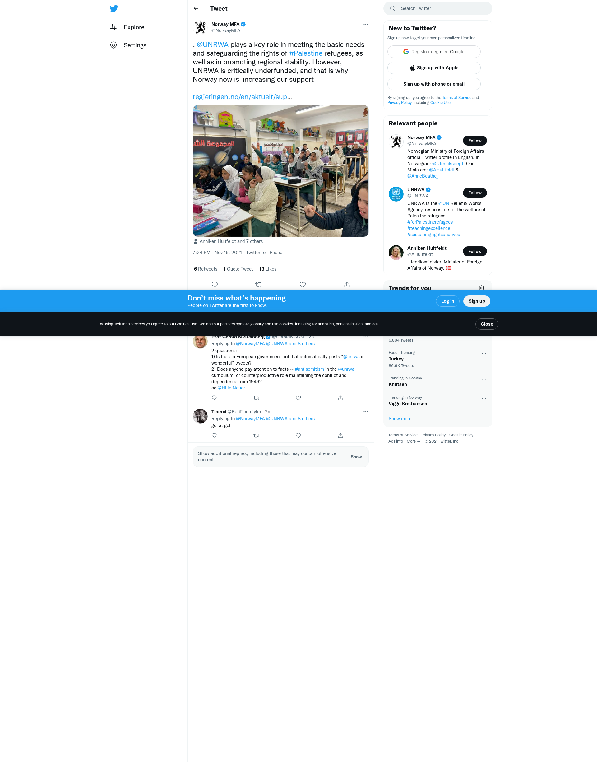 . @UNRWA plays a key role in meeting the basic needs and safeguarding the rights of #Palestine refugees, as well as in promoting regional stability. However, UNRWA is critically underfunded, and that is why Norway now is increasing our support
