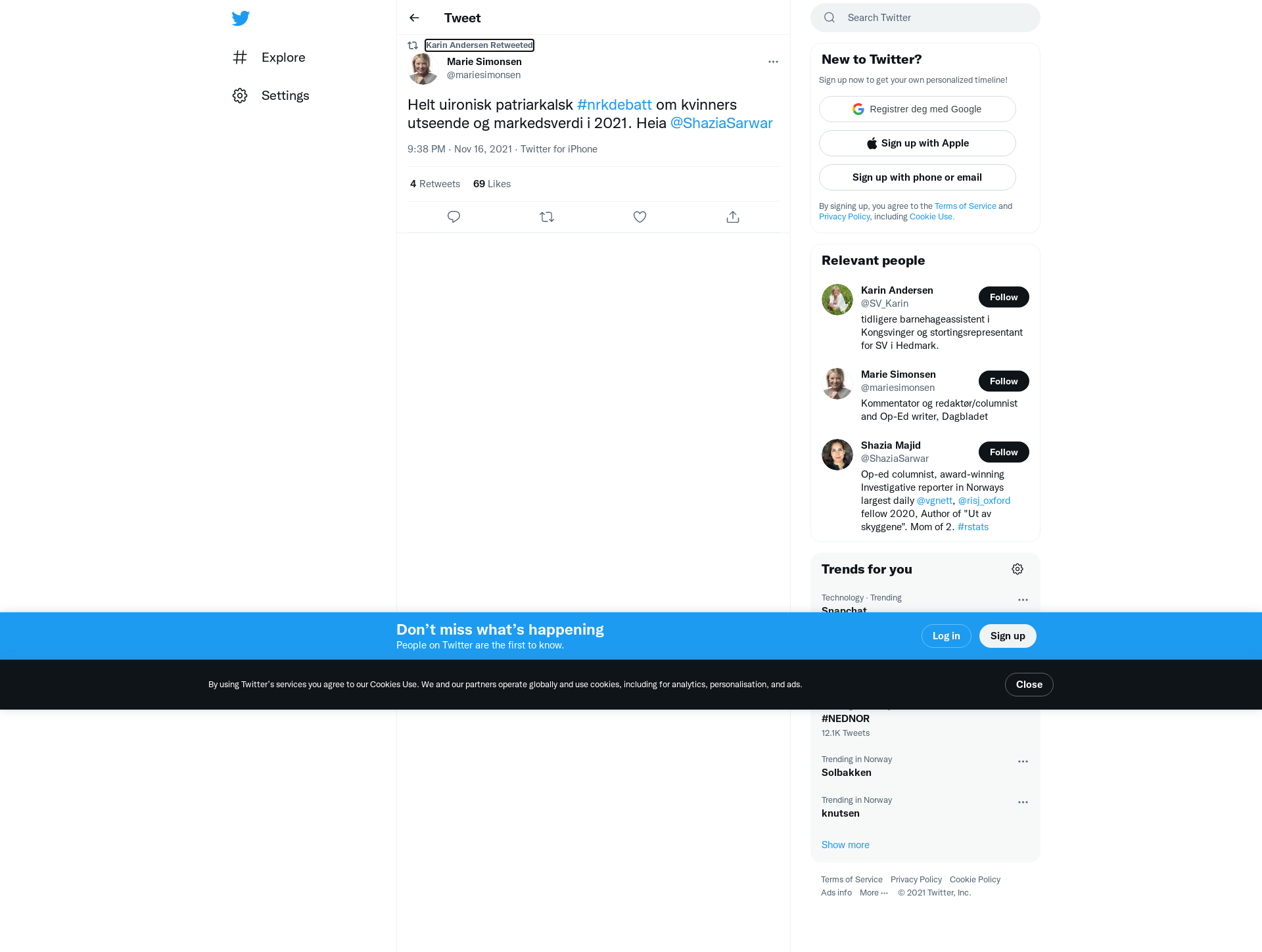 RT @mariesimonsen: Helt uironisk patriarkalsk #nrkdebatt om kvinners utseende og markedsverdi i 2021. Heia @ShaziaSarwar