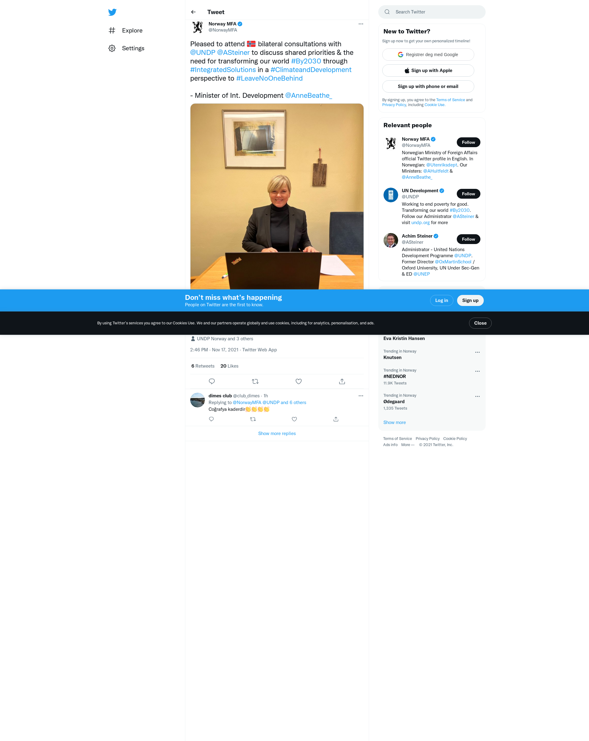 Pleased to attend 🇳🇴 bilateral consultations with @UNDP @ASteiner to discuss shared priorities & the need for transforming our world #By2030 through #IntegratedSolutions in a #ClimateandDevelopment perspective to #LeaveNoOneBehind