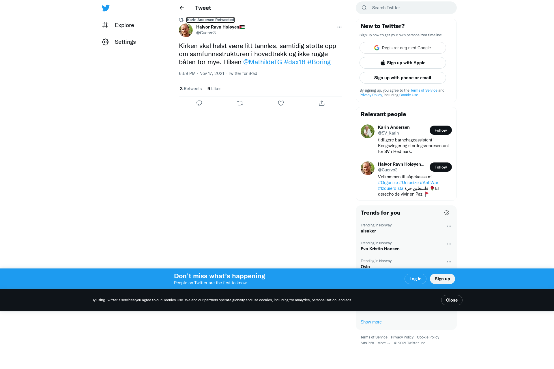 RT @Cuervo3: Kirken skal helst være litt tannløs, samtidig støtte opp om samfunnsstrukturen i hovedtrekk og ikke rugge båten for mye. Hilsen @MathildeTG #dax18 #Boring