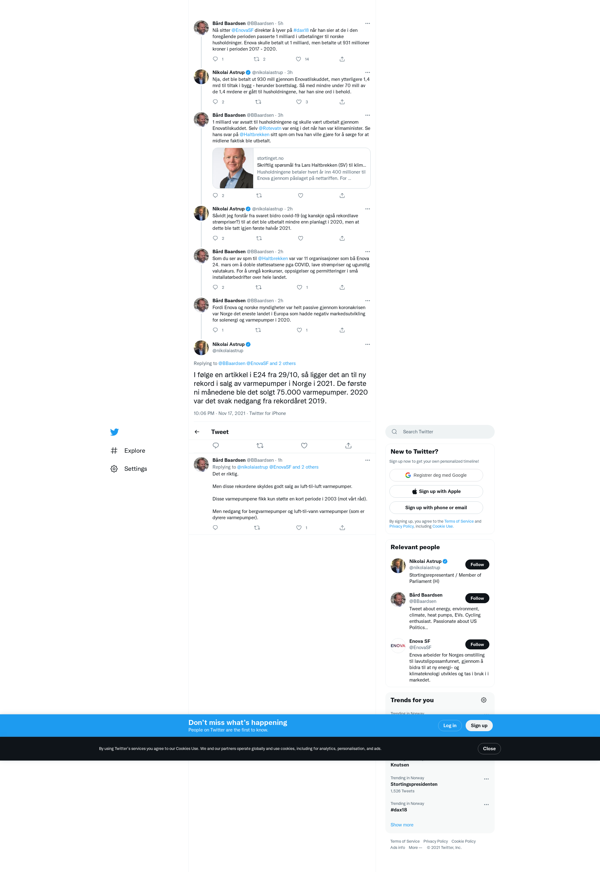 @BBaardsen @EnovaSF @Rotevatn @Haltbrekken I følge en artikkel i E24 fra 29/10, så ligger det an til ny rekord i salg av varmepumper i Norge i 2021. De første ni månedene ble det solgt 75.000 varmepumper. 2020 var det svak nedgang fra rekordåret 2019.