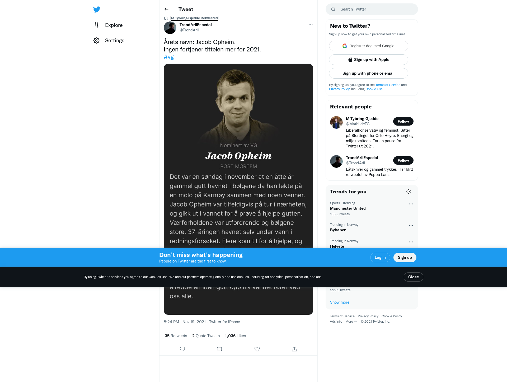 RT @TrondAril: Årets navn: Jacob Opheim. Ingen fortjener tittelen mer for 2021. #vg https://t.co/2R6CJ3Vi8y