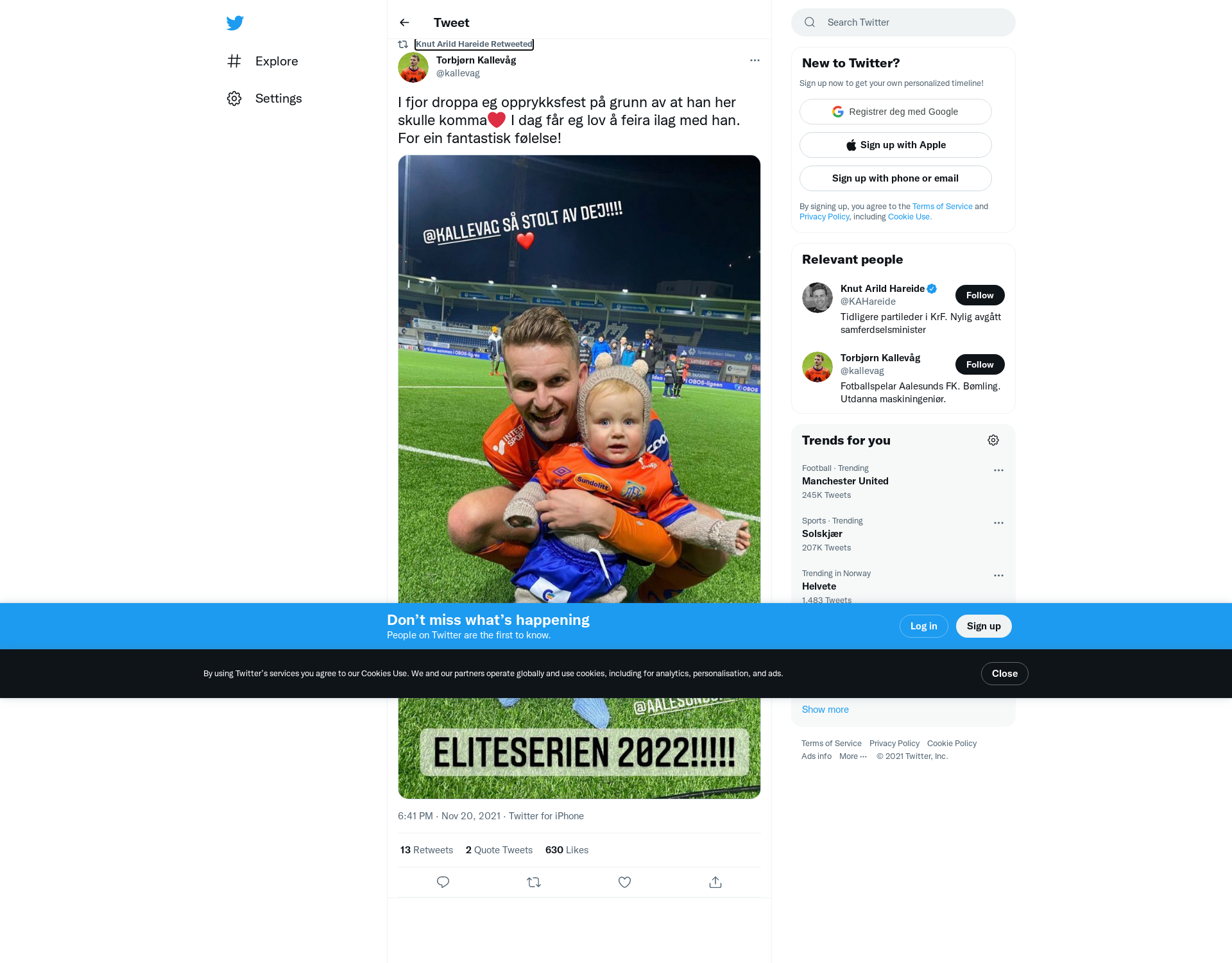 RT @kallevag: I fjor droppa eg opprykksfest på grunn av at han her skulle komma❤️ I dag får eg lov å feira ilag med han. For ein fantastisk følelse! https://t.co/MyfmryFzbY