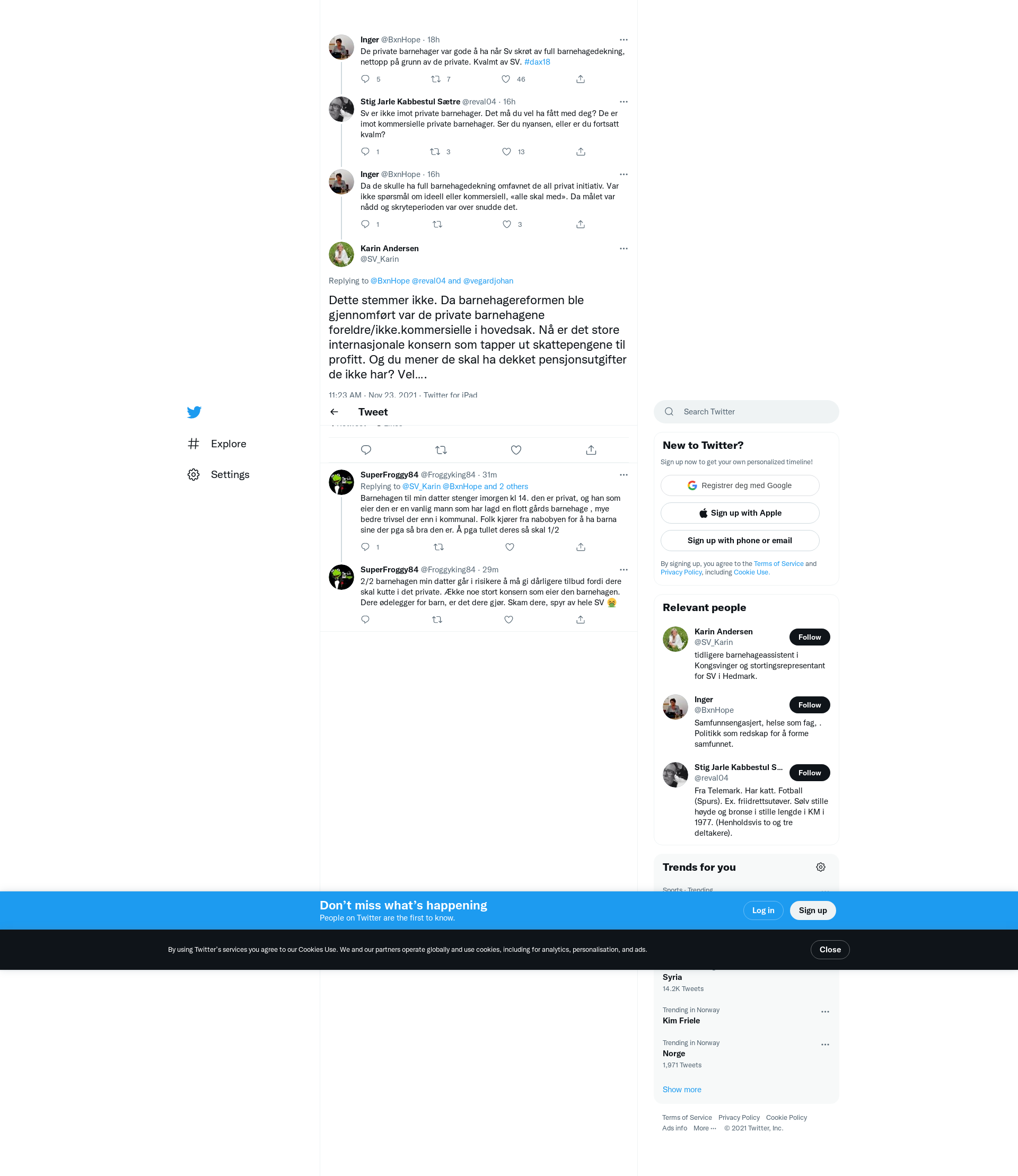 @BxnHope @reval04 @vegardjohan Dette stemmer ikke. Da barnehagereformen ble gjennomført var de private barnehagene foreldre/ikke.kommersielle i hovedsak. Nå er det store internasjonale konsern som tapper ut skattepengene til profitt. Og du mener de skal ha dekket pensjonsutgifter de ikke har? Vel….