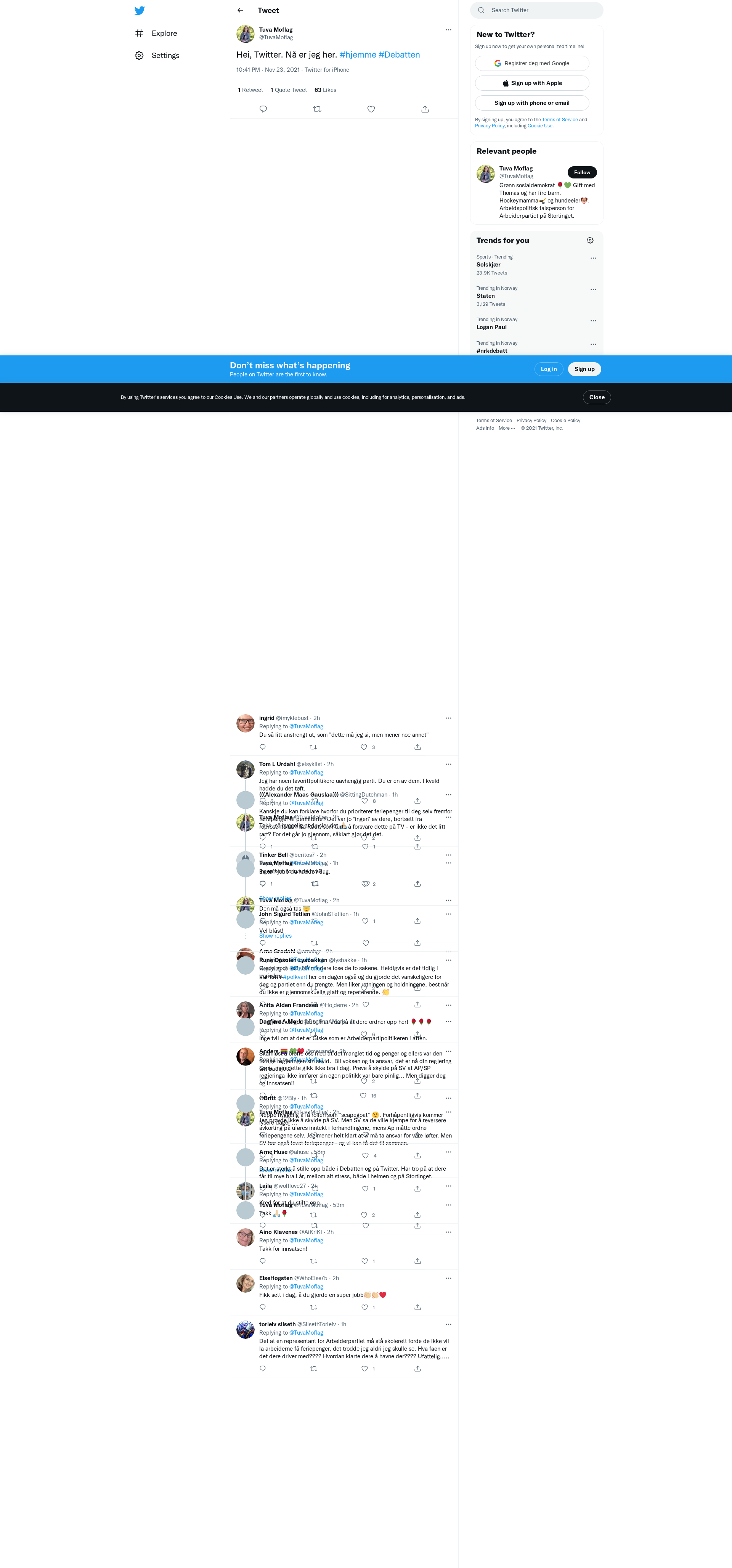 Hei, Twitter. Nå er jeg her. #hjemme #Debatten