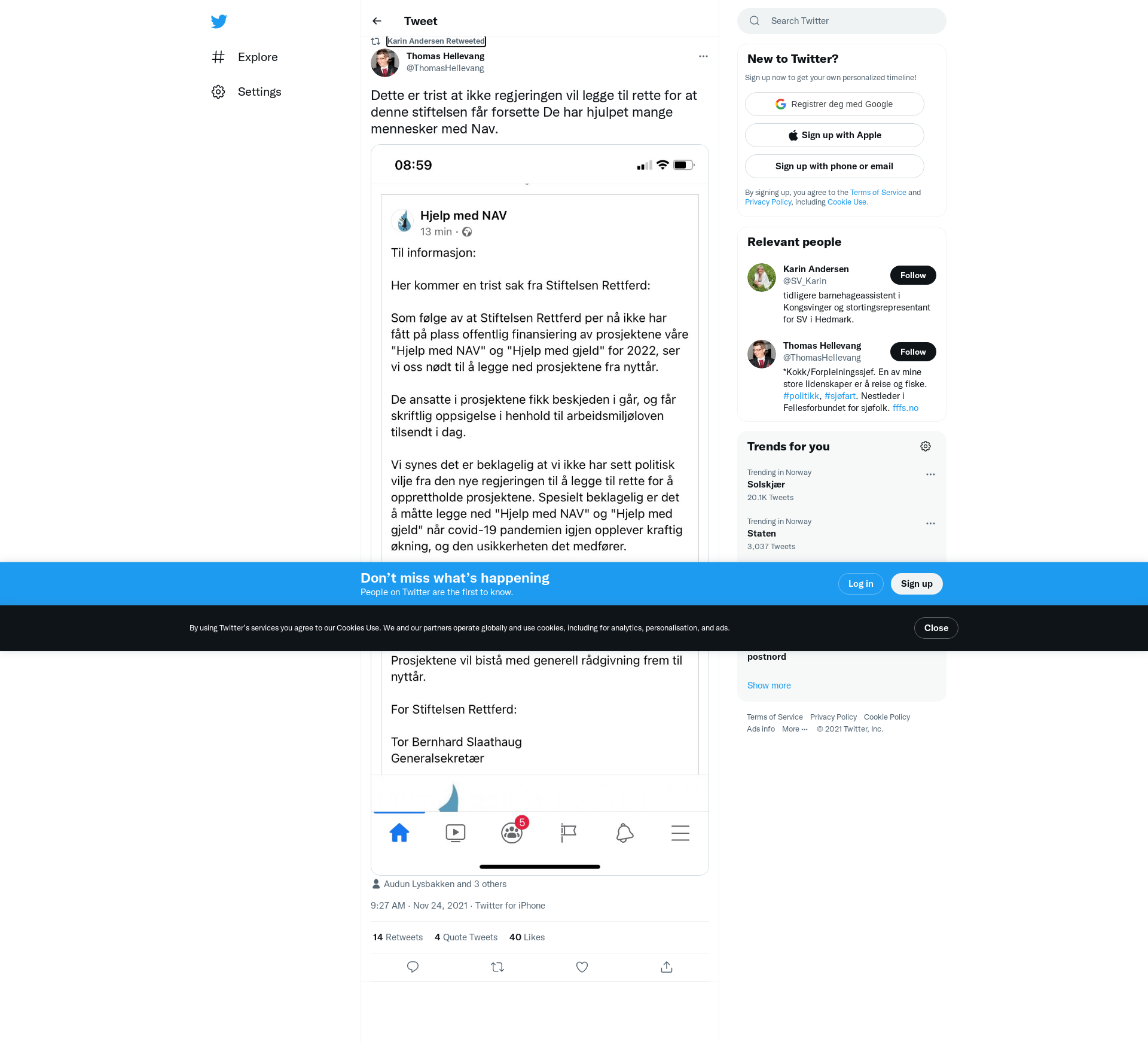 RT @ThomasHellevang: Dette er trist at ikke regjeringen vil legge til rette for at denne stiftelsen får forsette De har hjulpet mange mennesker med Nav. https://t.co/QG3StZOtUc