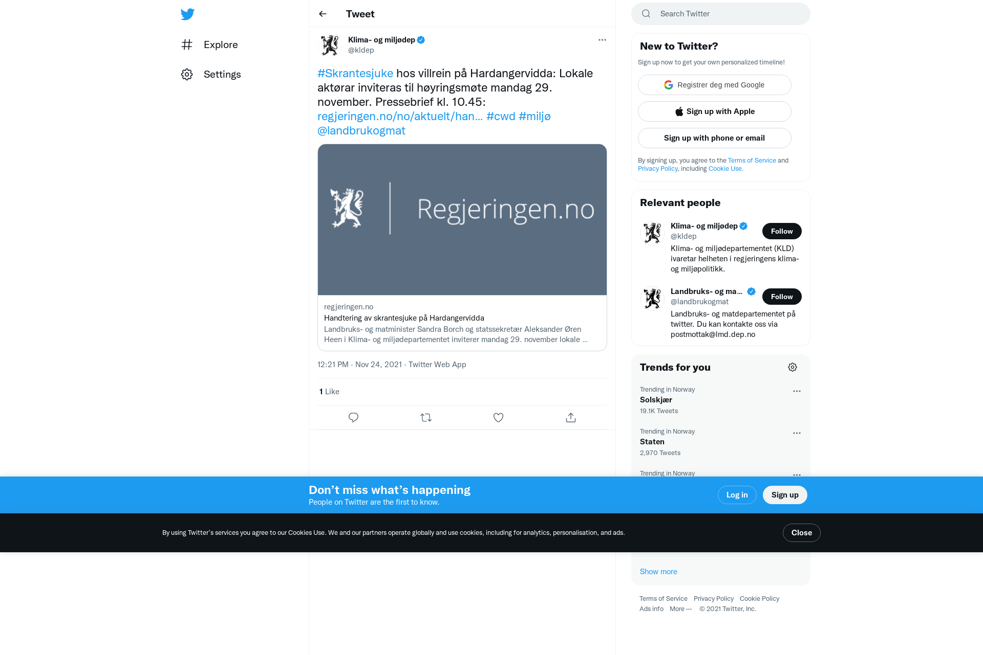 Landbruks- og matminister Sandra Borch og statssekretær Aleksander Øren Heen i Klima- og miljødepartementet inviterer mandag 29. november lokale aktørar til eit høyringsmøte for vidare handsaming av skrantesjuke på Hardangervidda. Det blir halde ein pr...