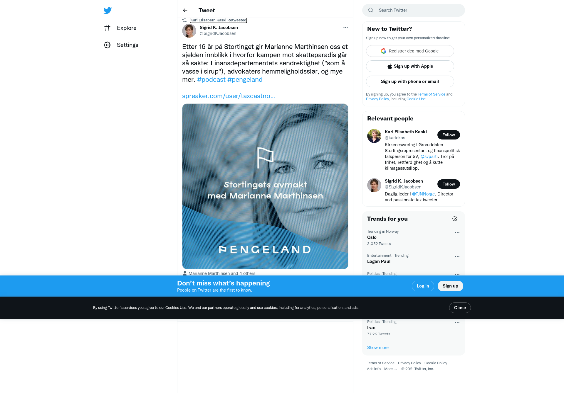 RT @SigridKJacobsen: Etter 16 år på Stortinget gir Marianne Marthinsen oss et sjelden innblikk i hvorfor kampen mot skatteparadis går så sakte: Finansdepartementets sendrektighet ("som å vasse i sirup"), advokaters hemmeligholdsslør, og mye mer. #podcast #pengeland