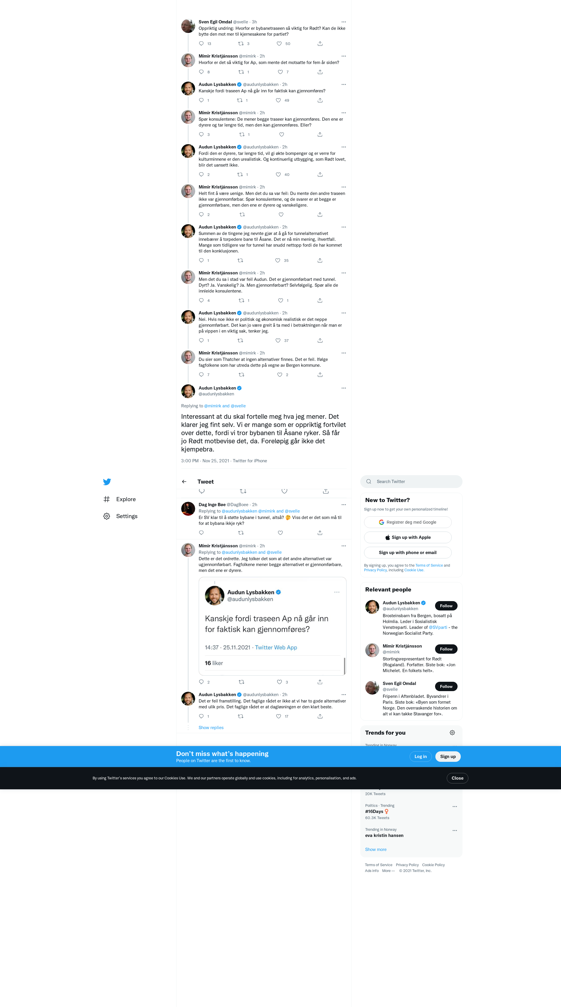 @mimirk @svelle Interessant at du skal fortelle meg hva jeg mener. Det klarer jeg fint selv. Vi er mange som er oppriktig fortvilet over dette, fordi vi tror bybanen til Åsane ryker. Så får jo Rødt motbevise det, da. Foreløpig går ikke det kjempebra.