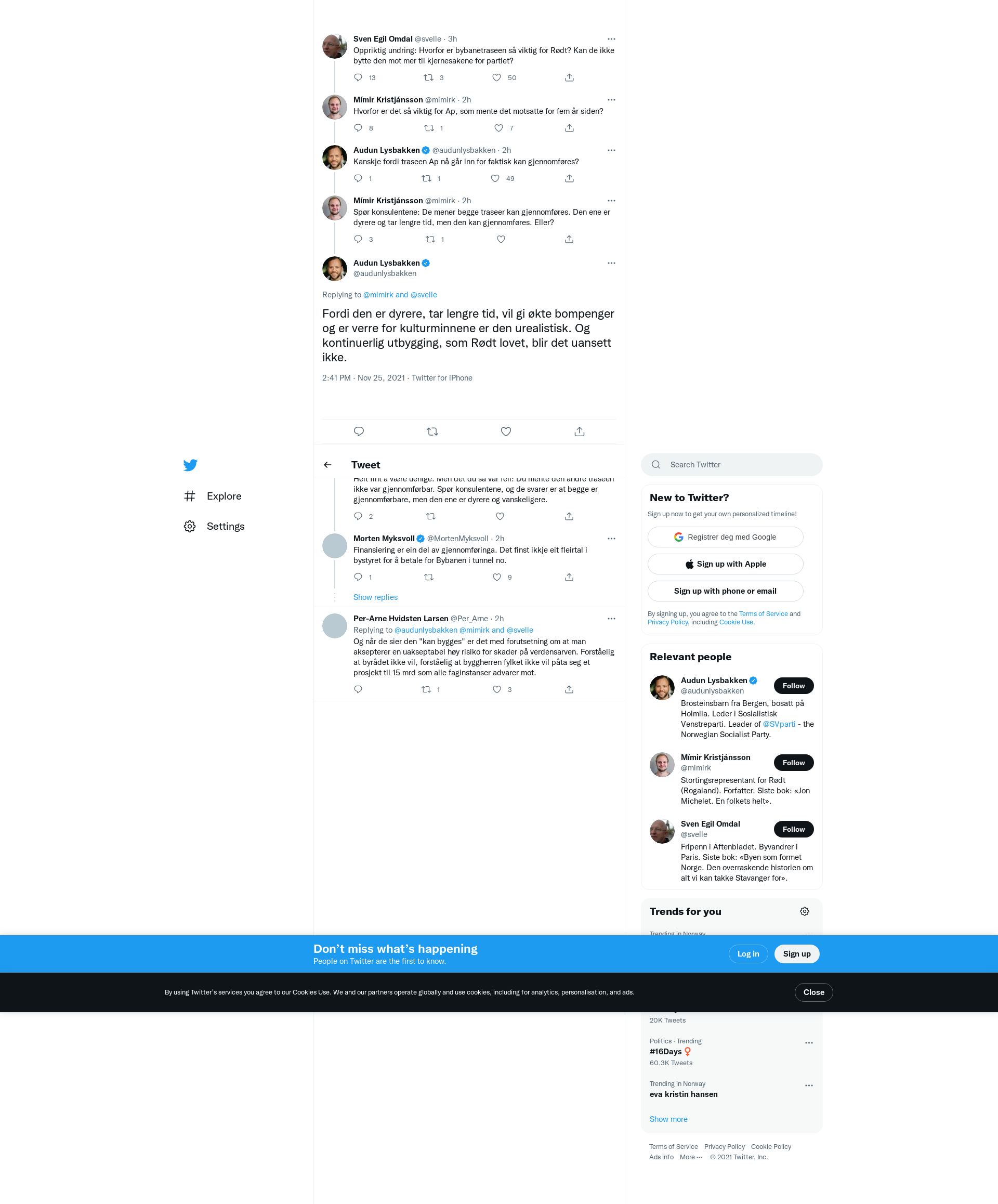 @mimirk @svelle Fordi den er dyrere, tar lengre tid, vil gi økte bompenger og er verre for kulturminnene er den urealistisk. Og kontinuerlig utbygging, som Rødt lovet, blir det uansett ikke.