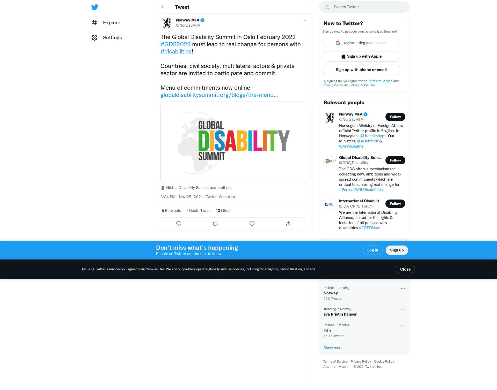 The Global Disability Summit in Oslo February 2022 #GDS2022 must lead to real change for persons with #disabilities!