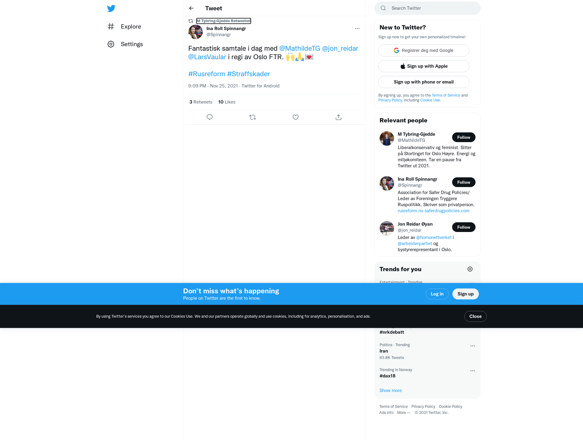 RT @Spinnangr: Fantastisk samtale i dag med @MathildeTG @jon_reidar @LarsVaular i regi av Oslo FTR. 🙌🙏💌 #Rusreform #Straffskader