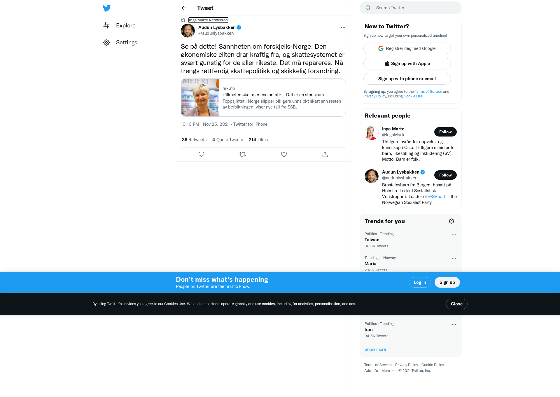 RT @audunlysbakken: Se på dette! Sannheten om forskjells-Norge: Den økonomiske eliten drar kraftig fra, og skattesystemet er svært gunstig for de aller rikeste. Det må repareres. Nå trengs rettferdig skattepolitikk og skikkelig forandring. https://t.co/8r3KZ1aYEl