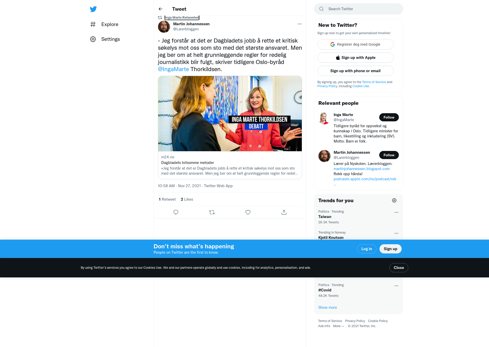 RT @Larerbloggen: - Jeg forstår at det er Dagbladets jobb å rette et kritisk søkelys mot oss som sto med det største ansvaret. Men jeg ber om at helt grunnleggende regler for redelig journalistikk blir fulgt, skriver tidligere Oslo-byråd @IngaMarte Thorkildsen.