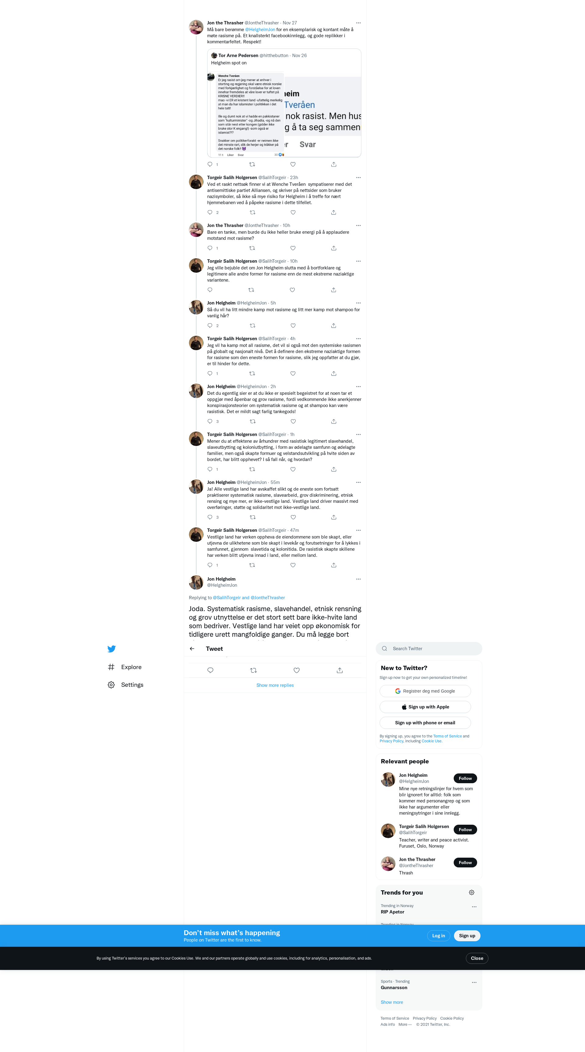 @SalihTorgeir @JontheThrasher Joda. Systematisk rasisme, slavehandel, etnisk rensning og grov utnyttelse er det stort sett bare ikke-hvite land som bedriver. Vestlige land har veiet opp økonomisk for tidligere urett mangfoldige ganger. Du må legge bort disse syke vrangforestillingene som florer i akademia.