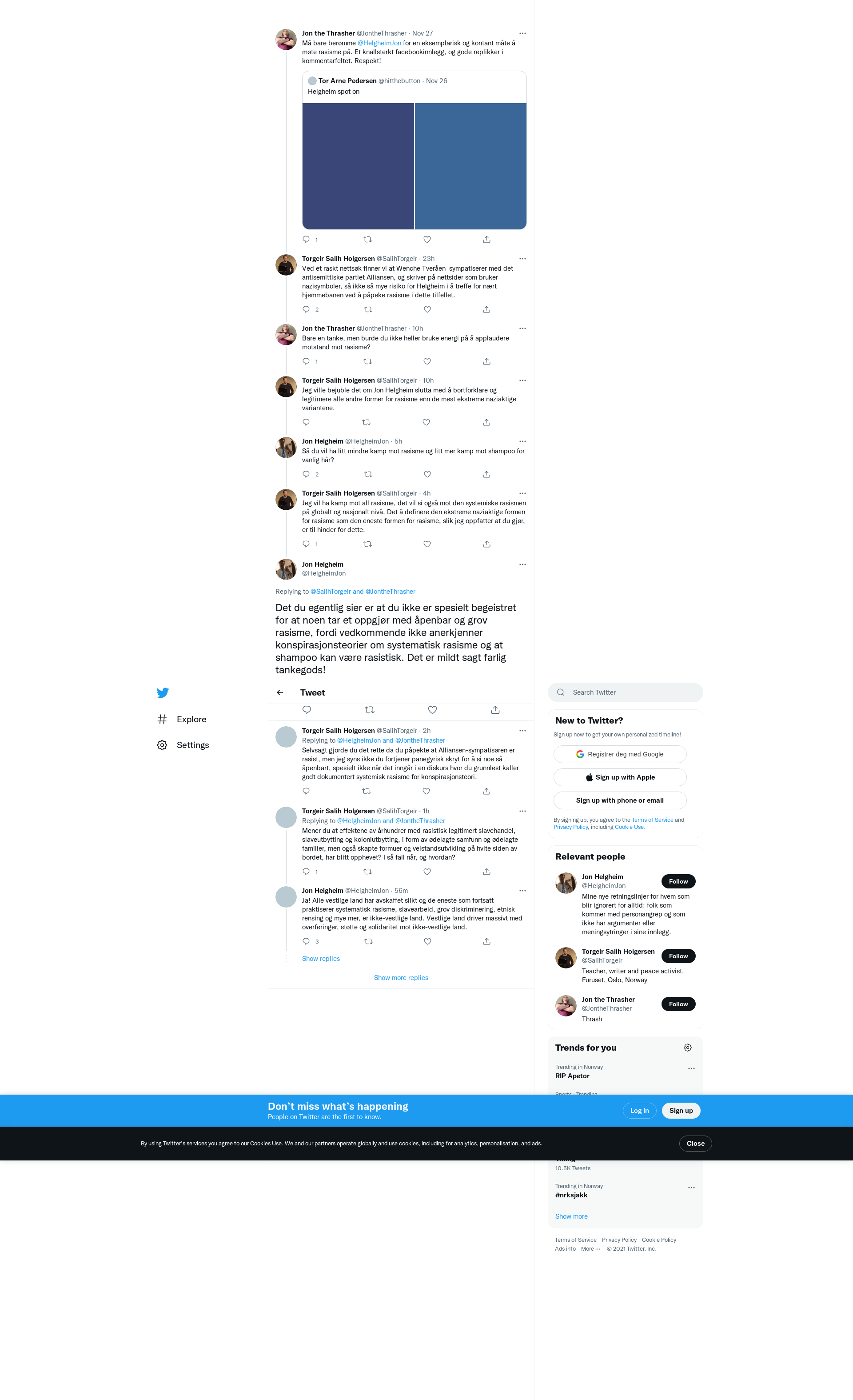 @SalihTorgeir @JontheThrasher Det du egentlig sier er at du ikke er spesielt begeistret for at noen tar et oppgjør med åpenbar og grov rasisme, fordi vedkommende ikke anerkjenner konspirasjonsteorier om systematisk rasisme og at shampoo kan være rasistisk. Det er mildt sagt farlig tankegods!