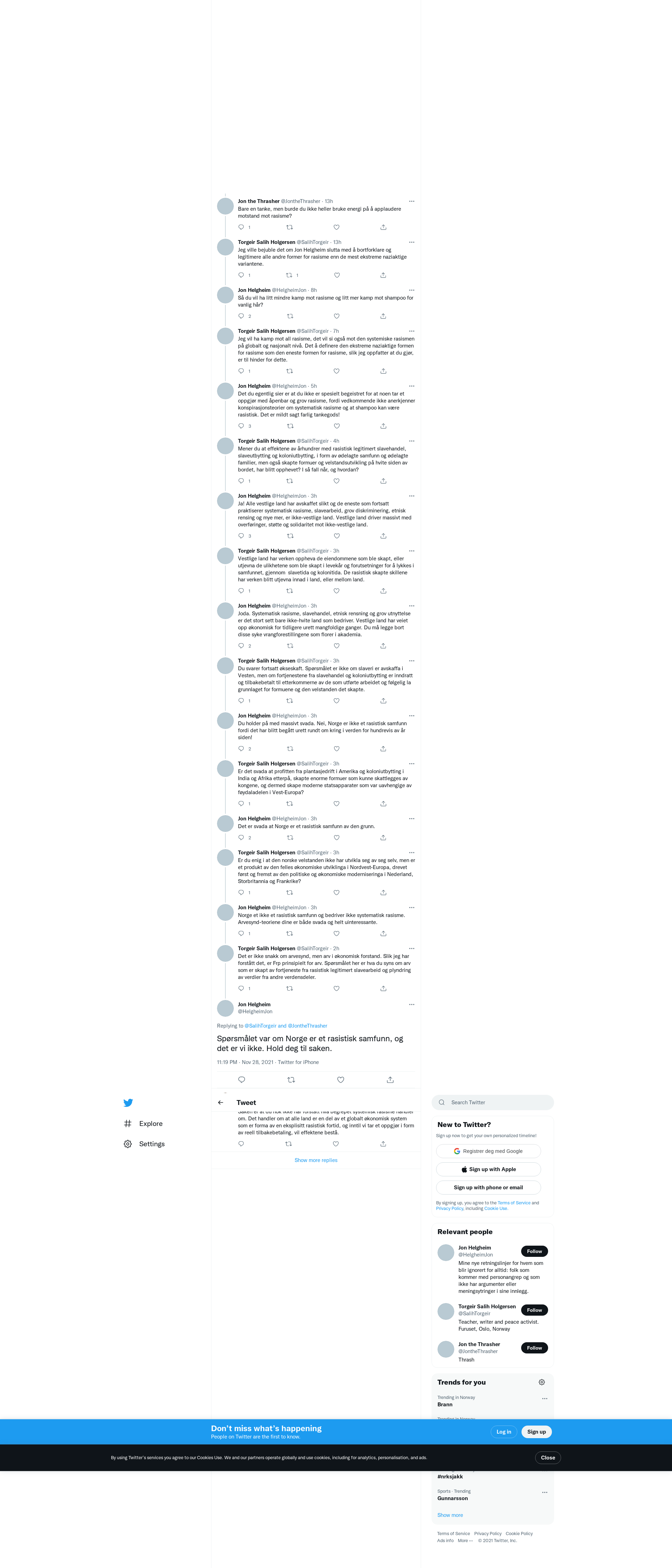 @SalihTorgeir @JontheThrasher Spørsmålet var om Norge er et rasistisk samfunn, og det er vi ikke. Hold deg til saken.